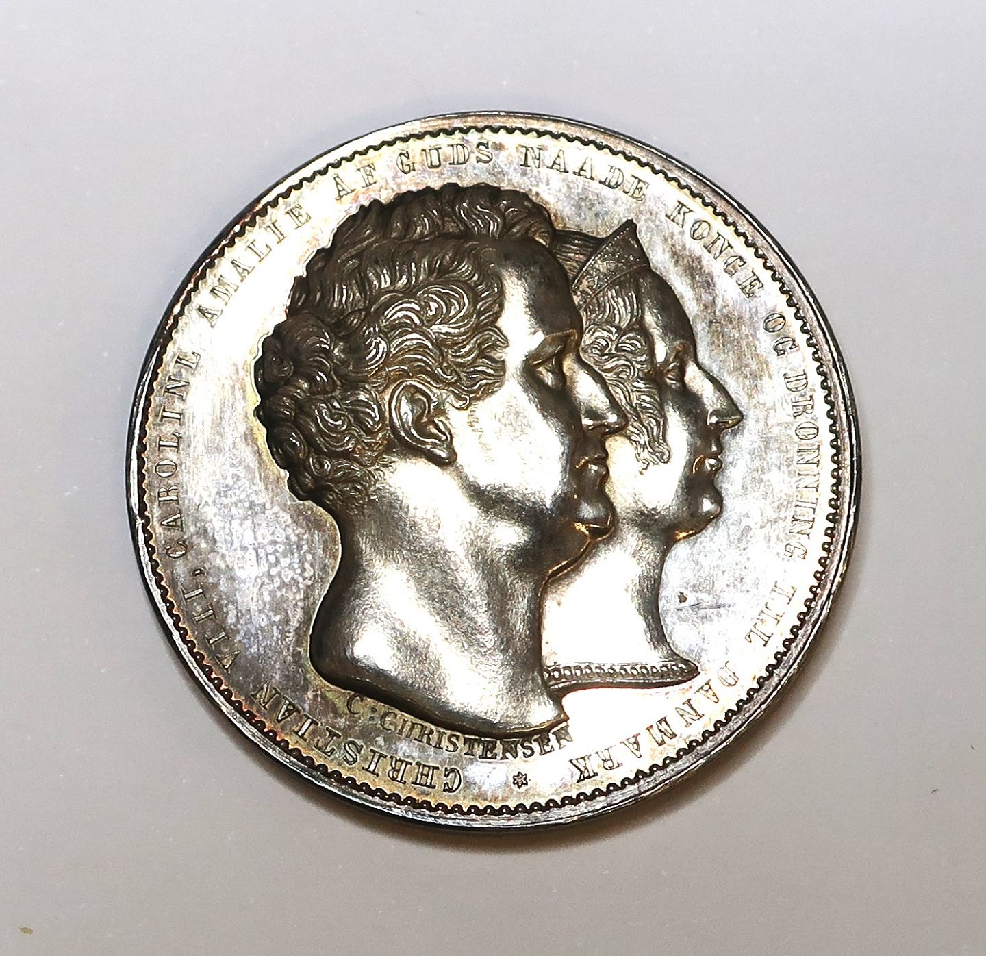 Danmark. Christian VIII. Sølv medalje. Tronskifte fra 1840. Diameter 28 mm.