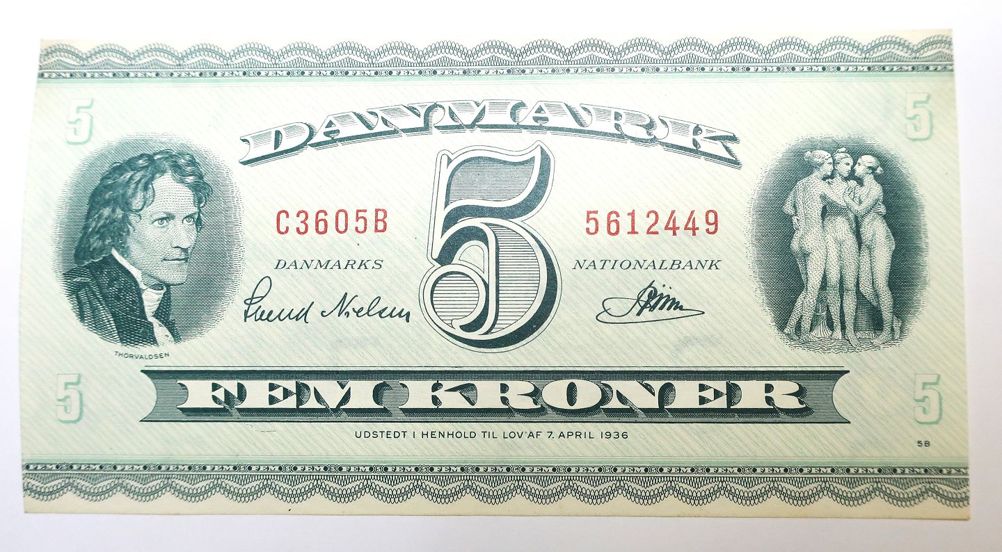 Denmark. Banknote 5 DKK 1935 (B). Quality 1+