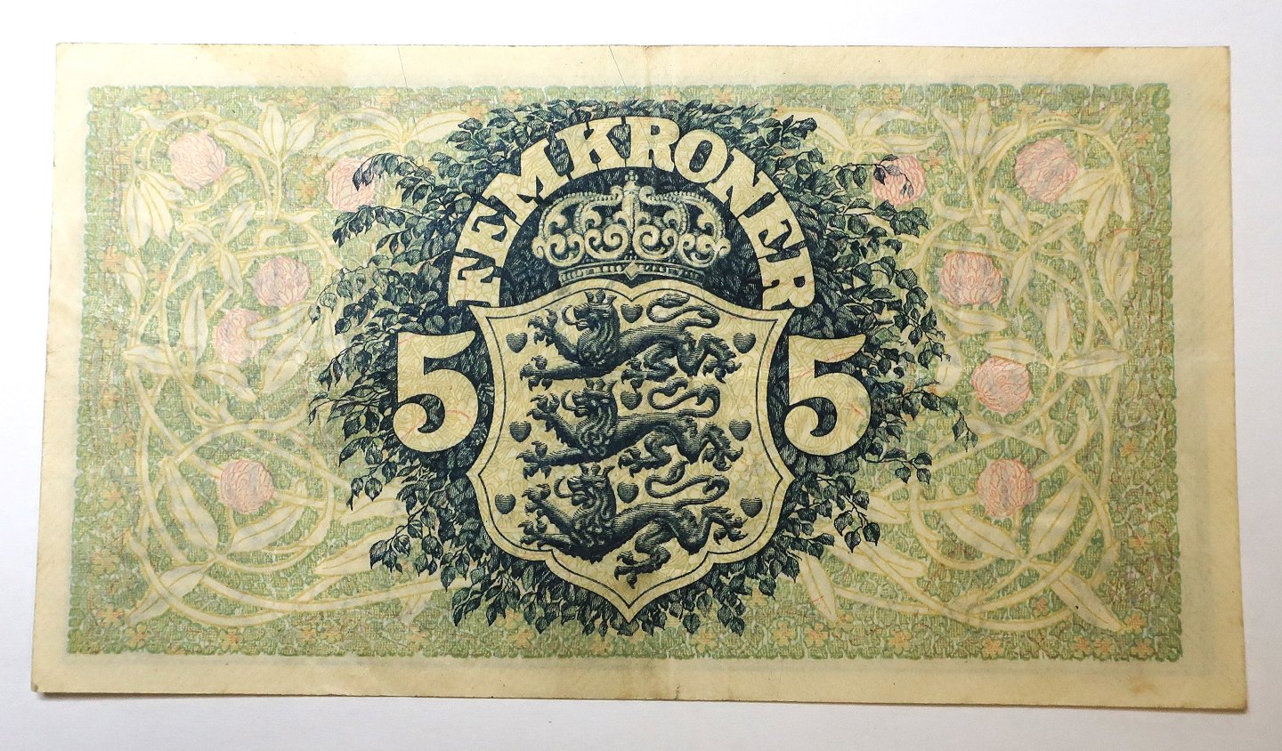 Danmark. Pengeseddel 5 kr. 1943 K.