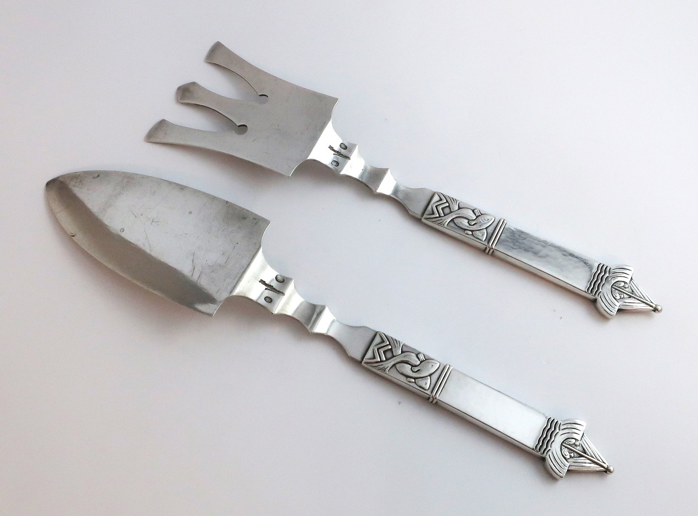 Hans Hansen. Sølvbestik (830). Fiskeserveringsbestik. Længde 25,2 cm. Produceret 1930.