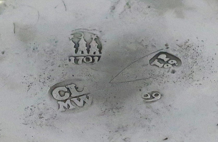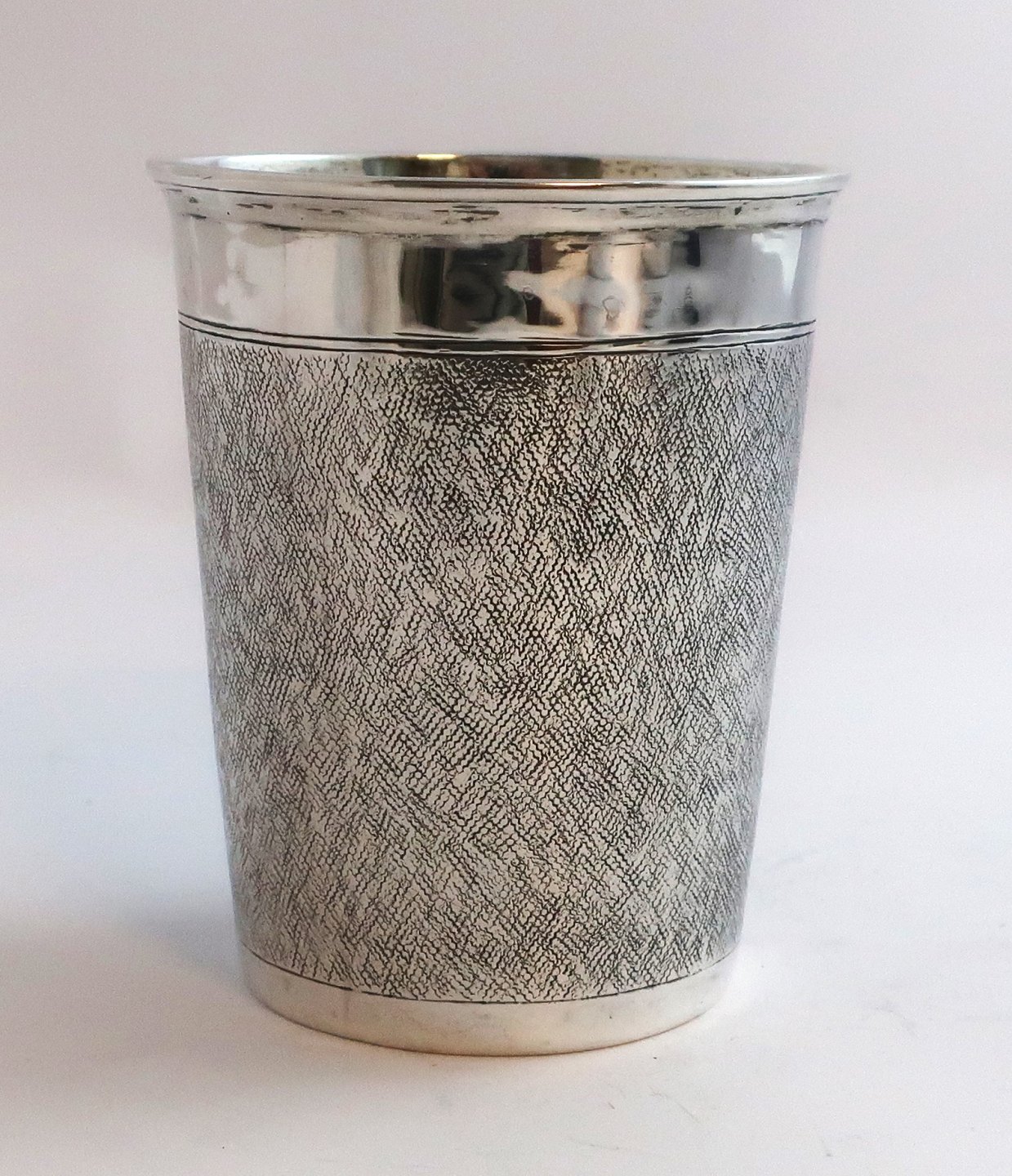 Thomas Hansen Pop, København. Nålepunslet sølv bæger. Stemplet 1699/1701. Højde 9 cm.