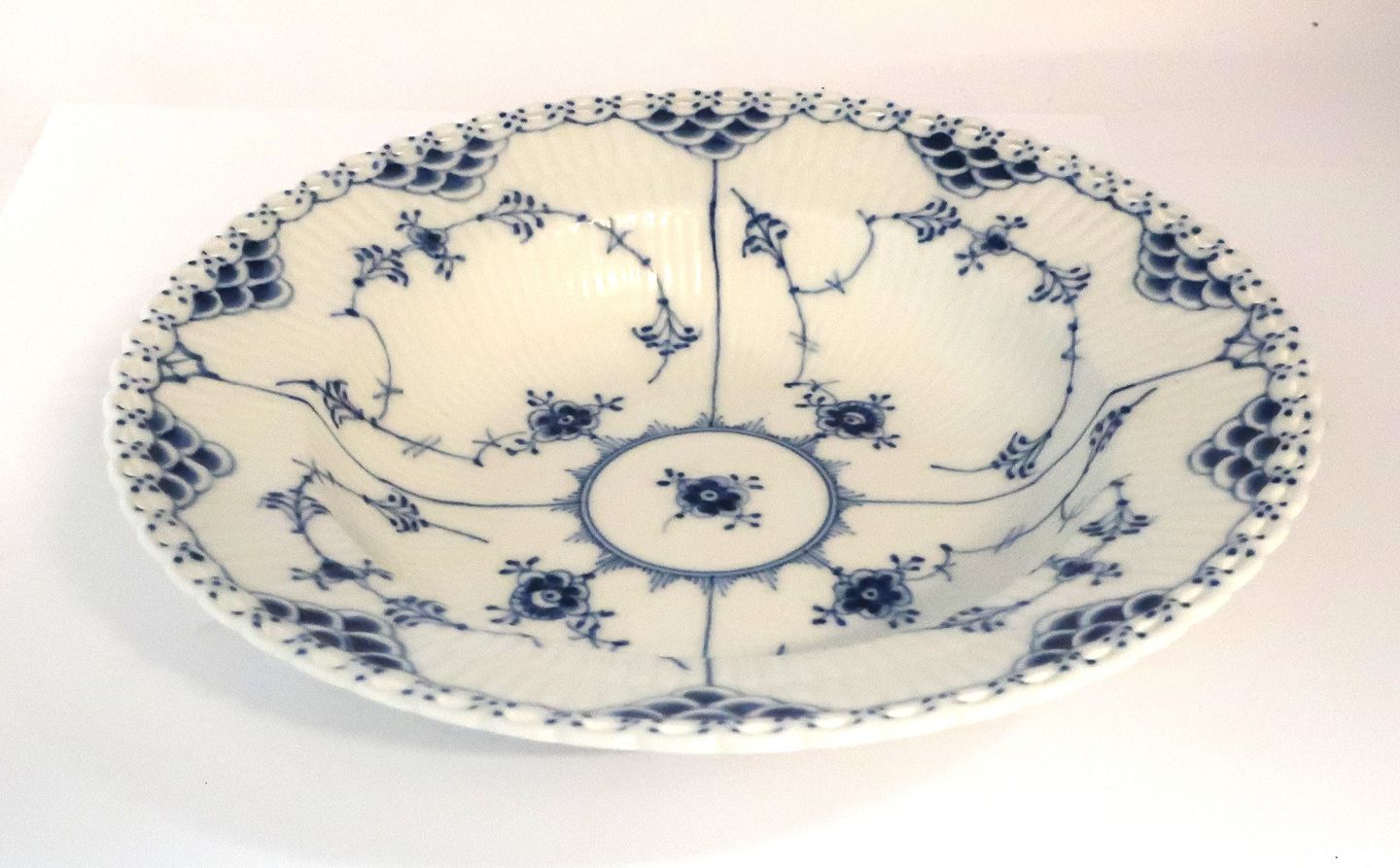 Royal Copenhagen. Musselmalet, Helblonde. Dyb tallerken. Model 1079. Diameter 23 cm. (1 sortering).