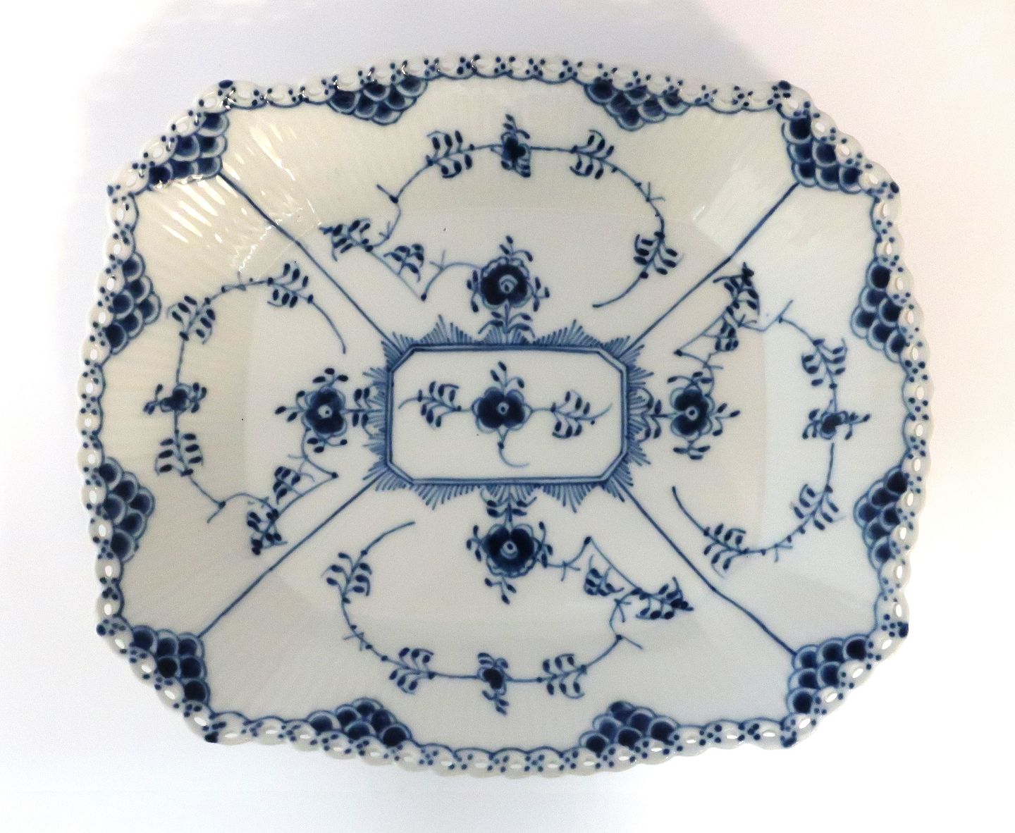 Royal Copenhagen. Musselmalet, Helblonde. Firkantet fad. Model 1143. Længde 26 cm. Bredde 23 cm. (3 sortering).