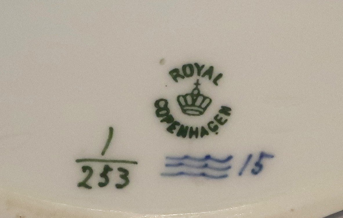 Royal Copenhagen. Musselmalet, riflet. Tekande. Model 253. Højde 13 cm. Længde 22 cm. (2 sortering). Produceret før 1923