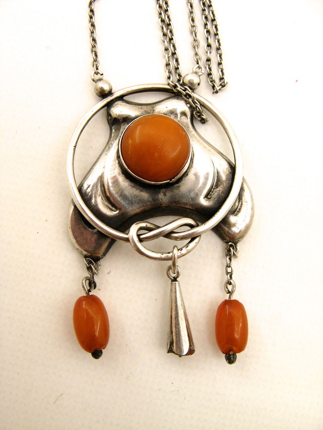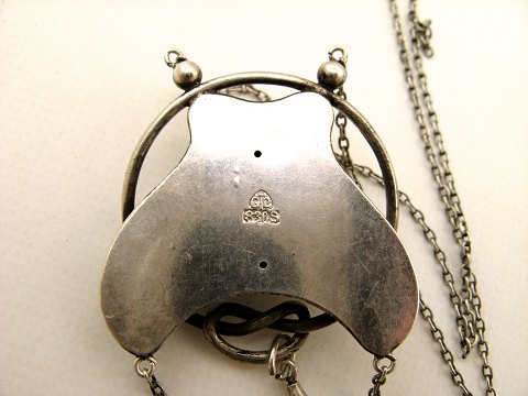 Kæde med Jugend vedhæng 6 x 3,5 cm. sølv og rav