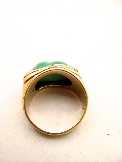14 karat guldring størrelse 54-55 med jade fra guldsmed Rudolf Andreasen Aabenraa Nr. 242728