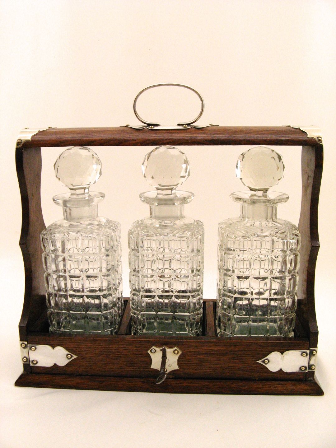 Engelsk tantalus fra slutningen af 1800-tallet med tre karafler