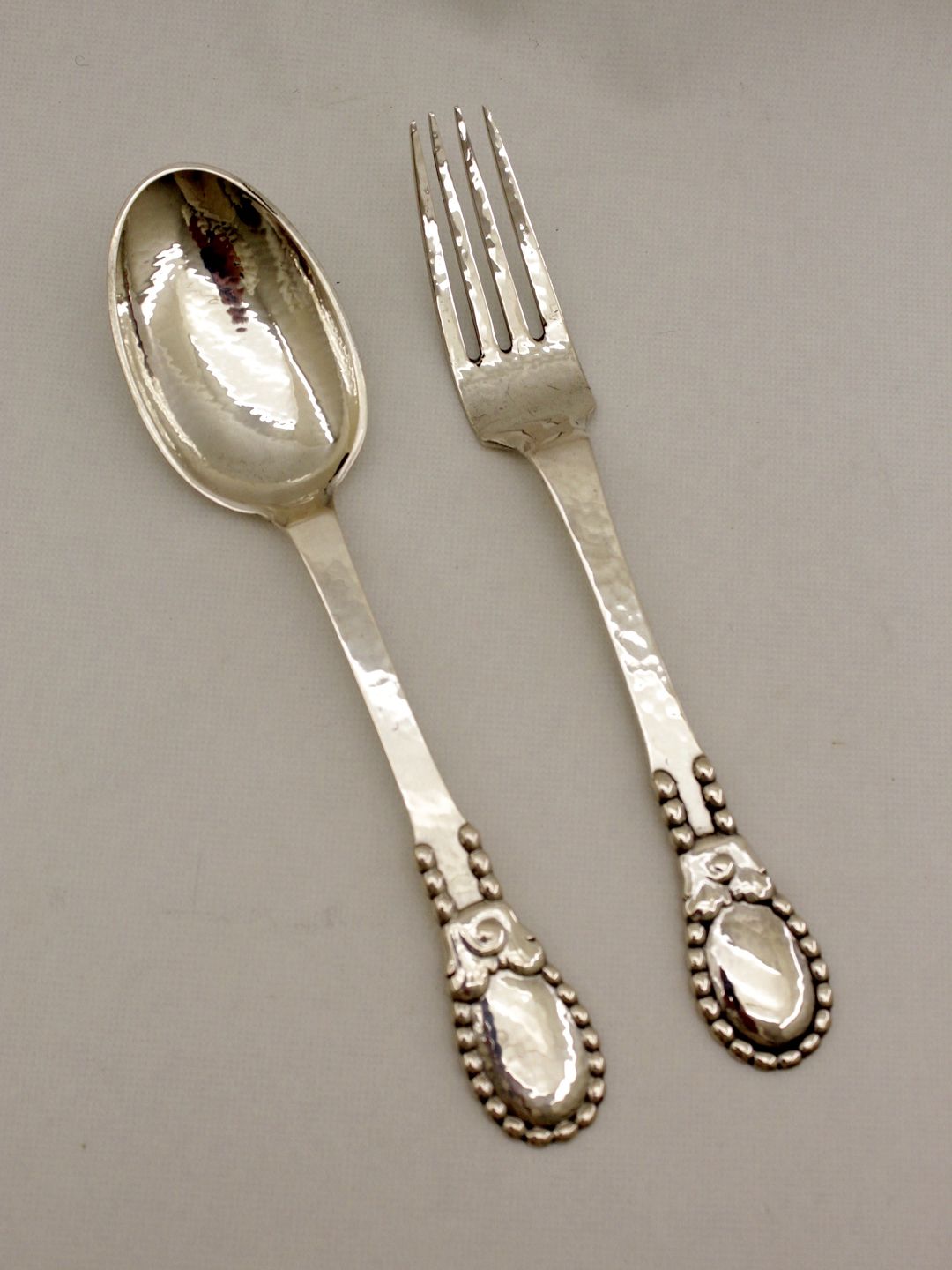 830 sølv Evald Nielsen Nr. 13 ske og gaffel L. 20,5 cm.