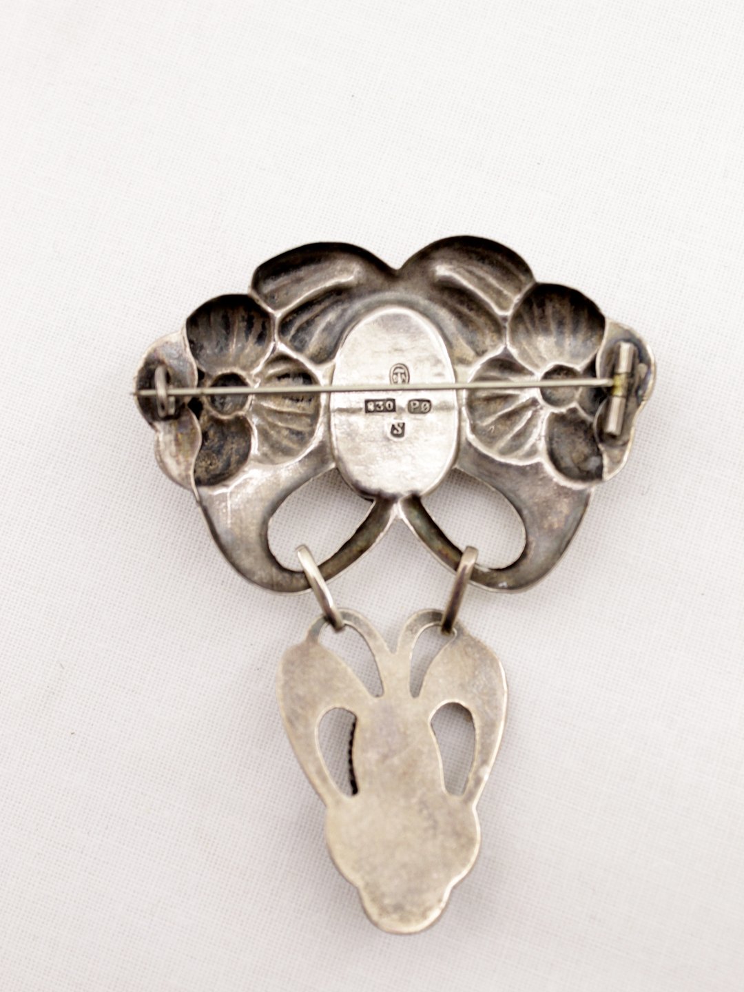 Jugend Broche 6 x 8 cm. 830 sølv med rav sølvsmed P. Ørsnæs Ålborg Nr. 299365