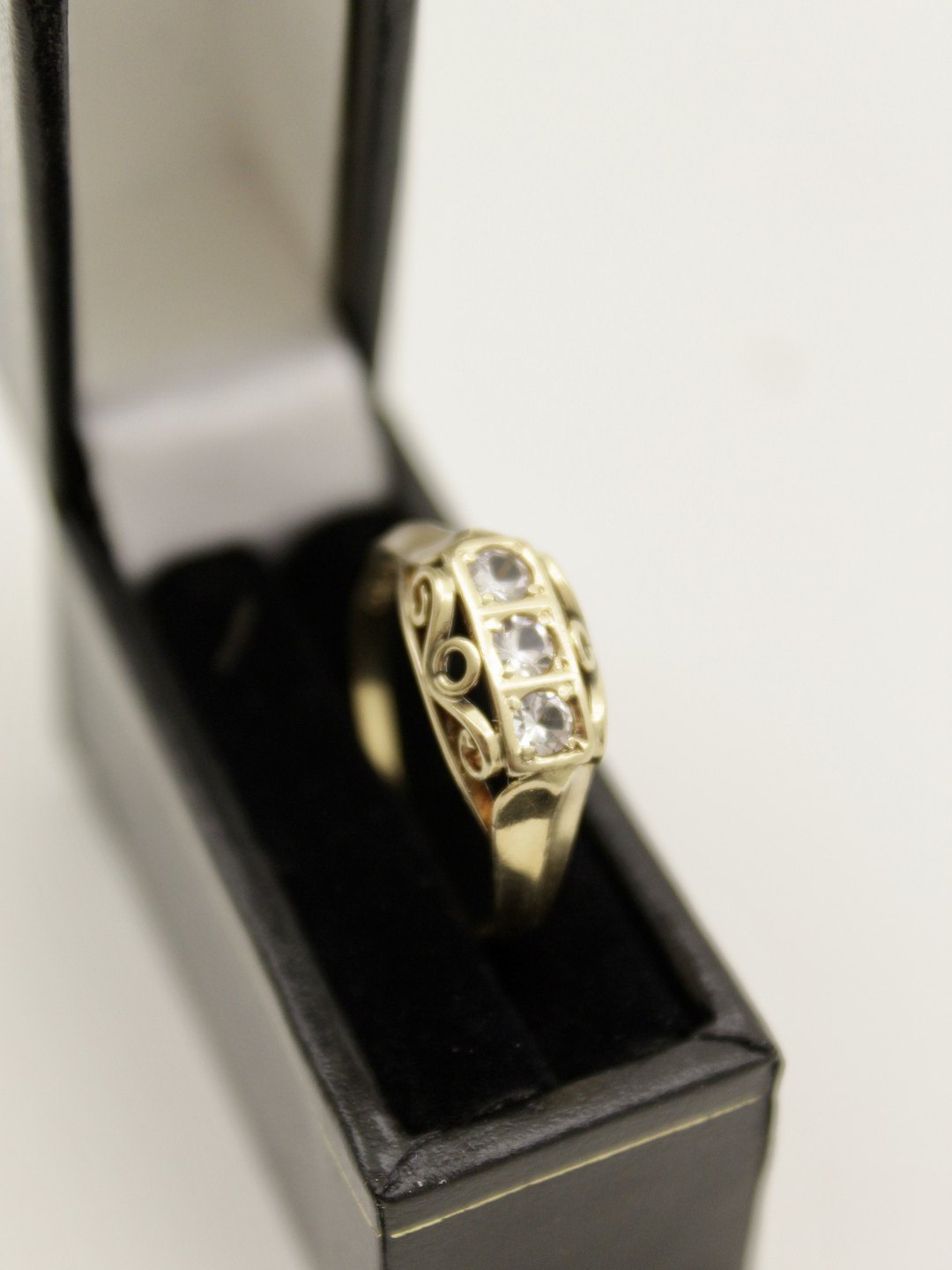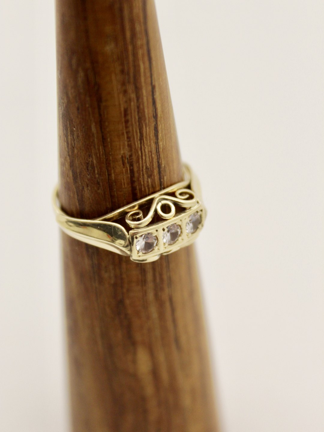 14ct gold ring size 55 Ø 1.75 cm. with three clear stones stamped 585 HS for Goldsmith Herman Siersbøl Kbhn Nr. 327411