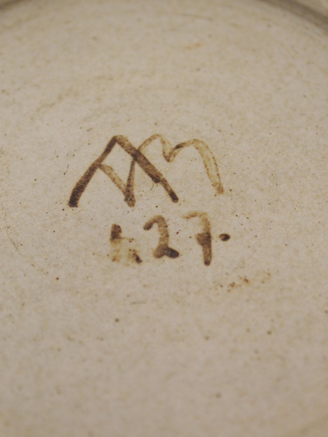 Arne Bang fad af glaseret stentøj Ø 16 cm. med rillet kant signeret monogram Nr. 327738