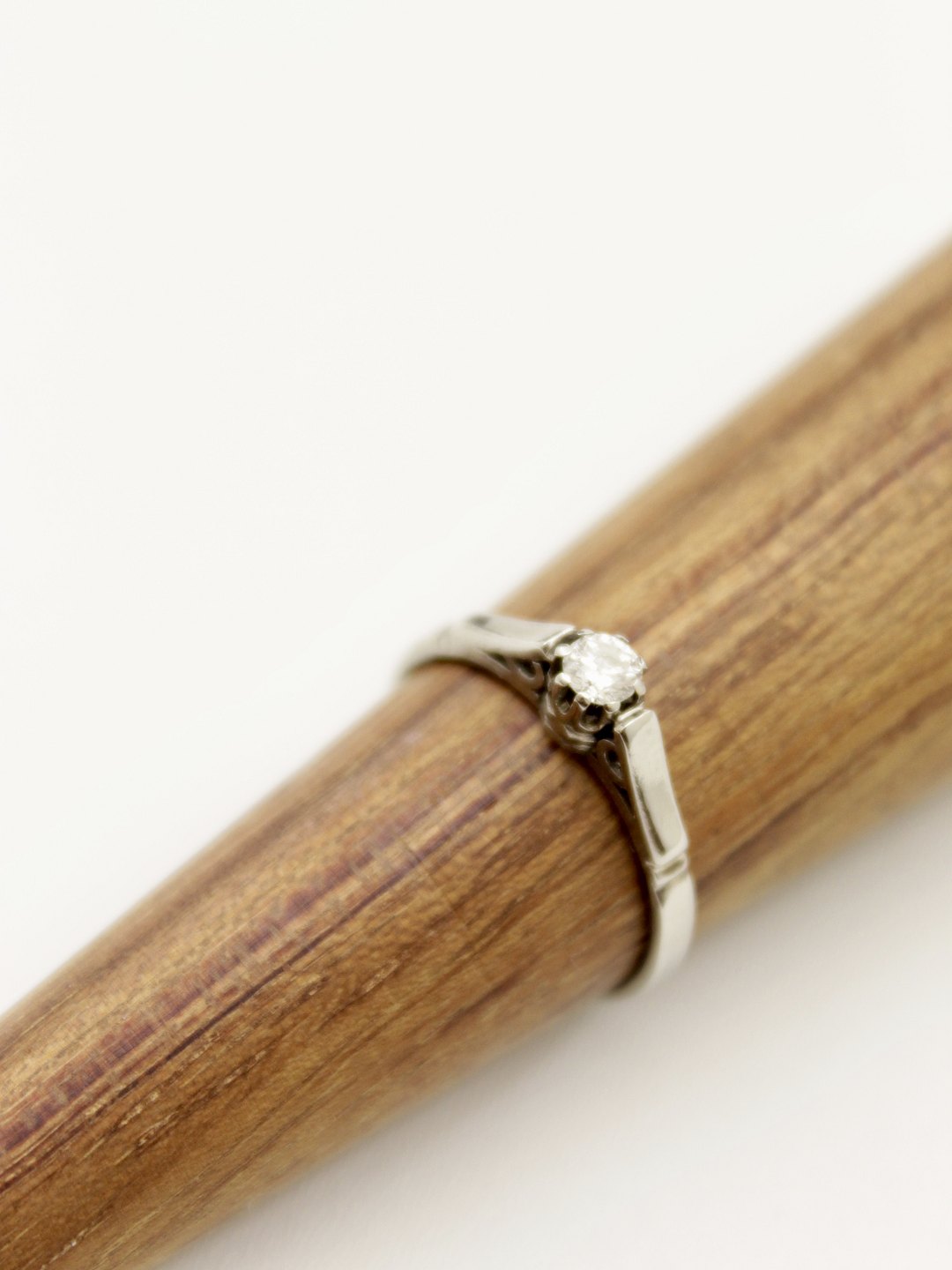 14ct white gold ring size 56 1/2 with diamond D. 3.5 mm. ca. 0.15 ct. stamped 585 PC no. 350886