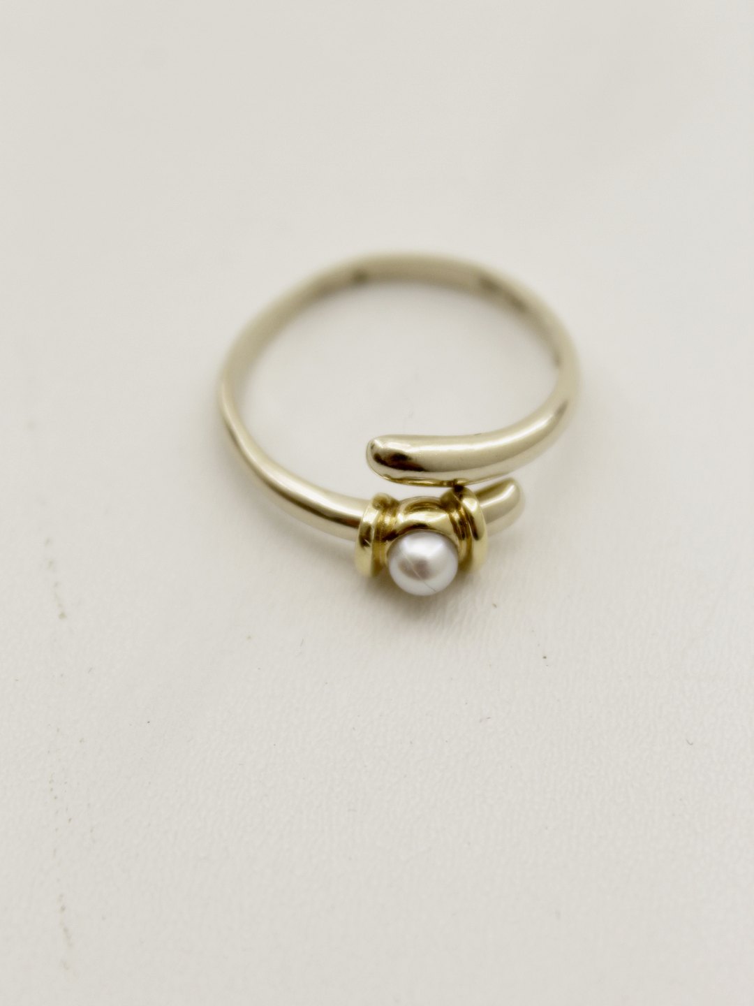 18 carat gold ring size 58 with pearl stamped 750 Ulr for goldsmith Henning Ulriksen Kgs.Lyngby. No. 363819