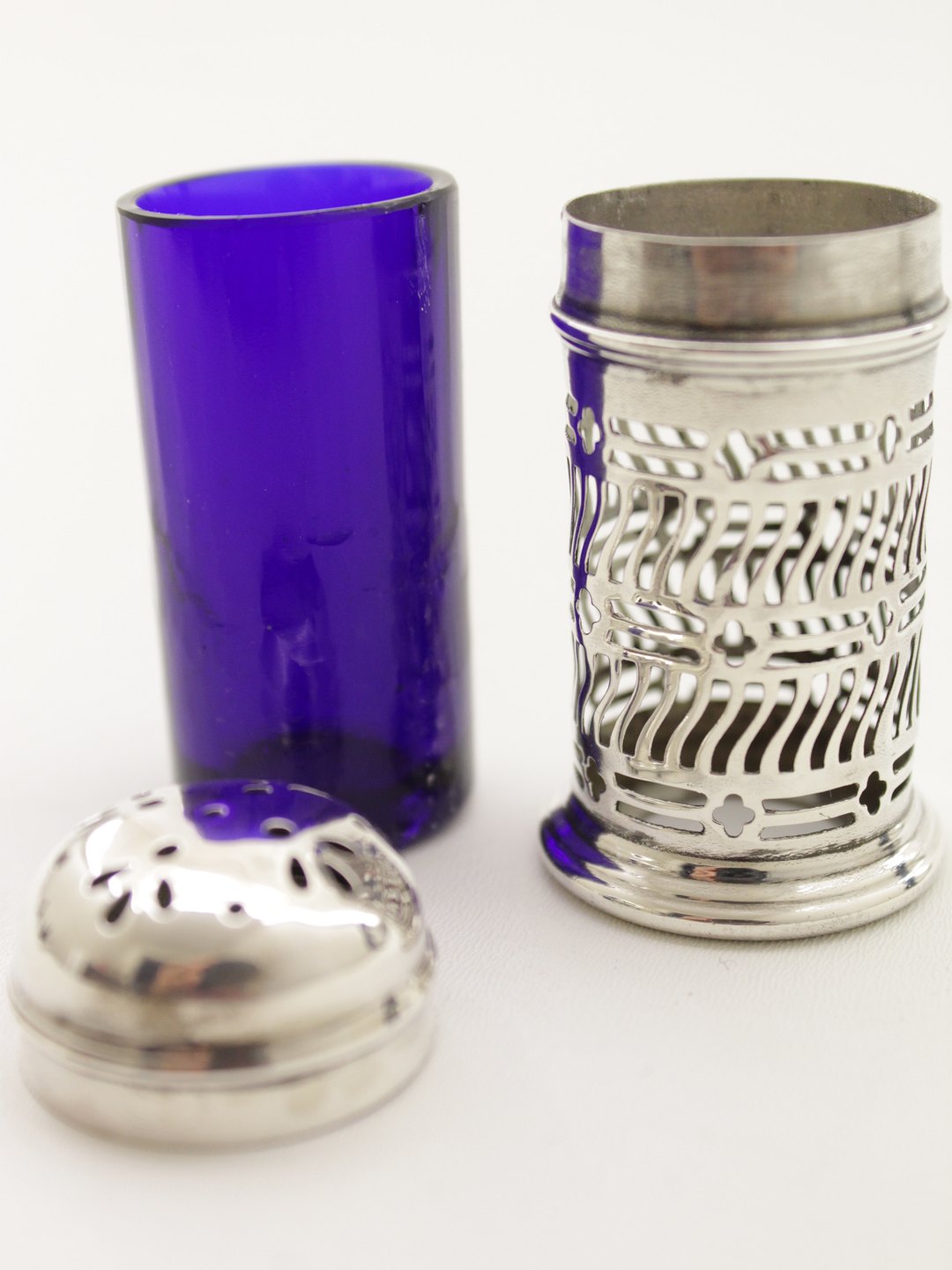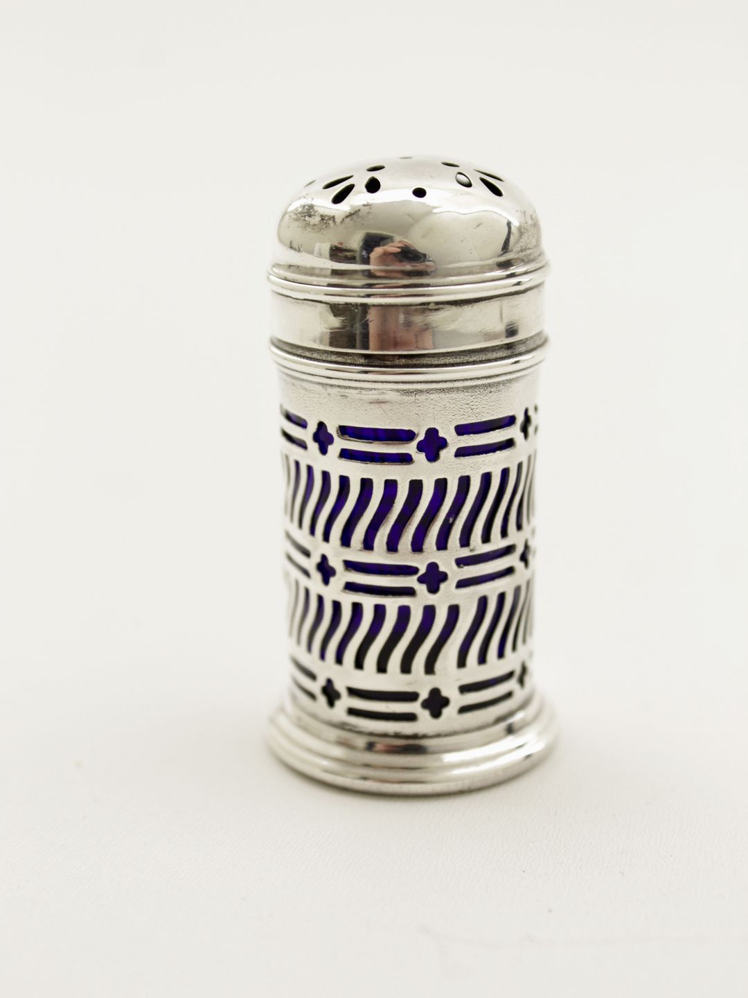 Sterling sølv salt bøsse 5,5 cm. med blåt glas indsats
