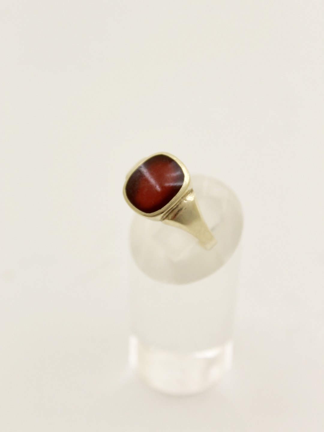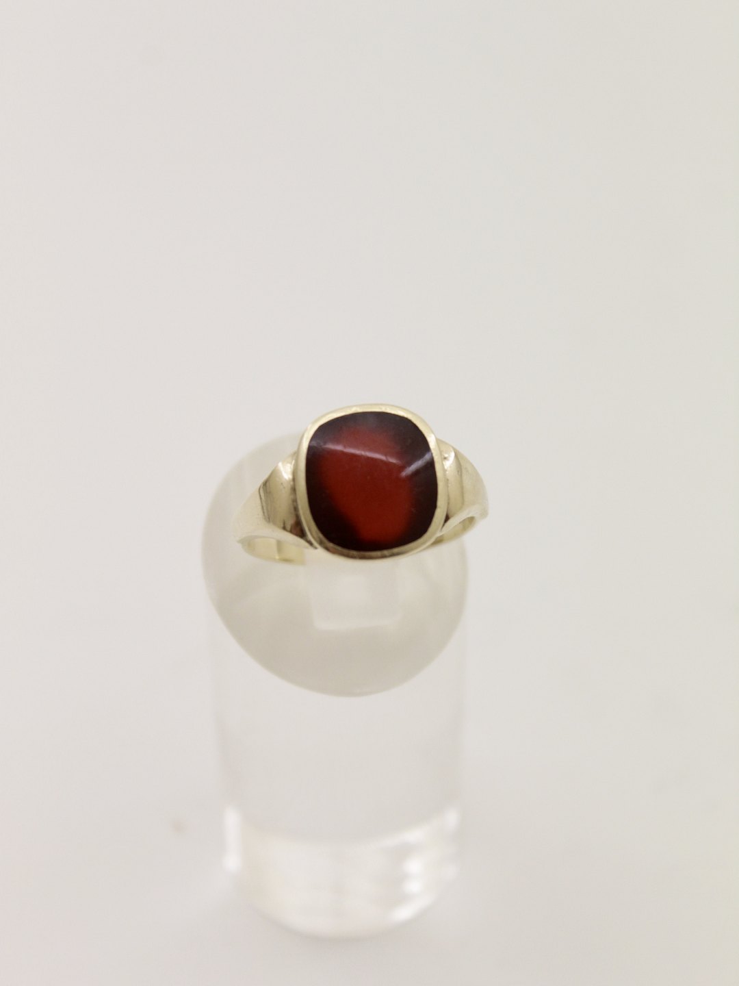 14 karat guld ring størrelse 62 med karneol stemplet 585 HS for guldsmed Hermann Siersbøl. Nr. 371395