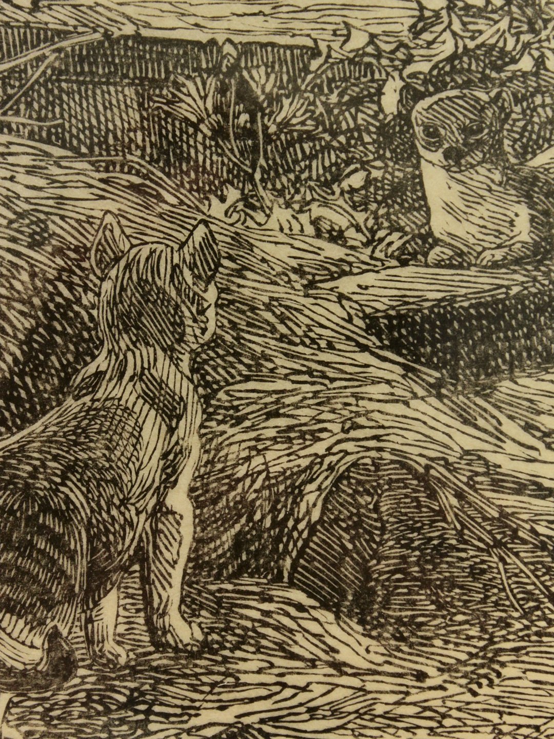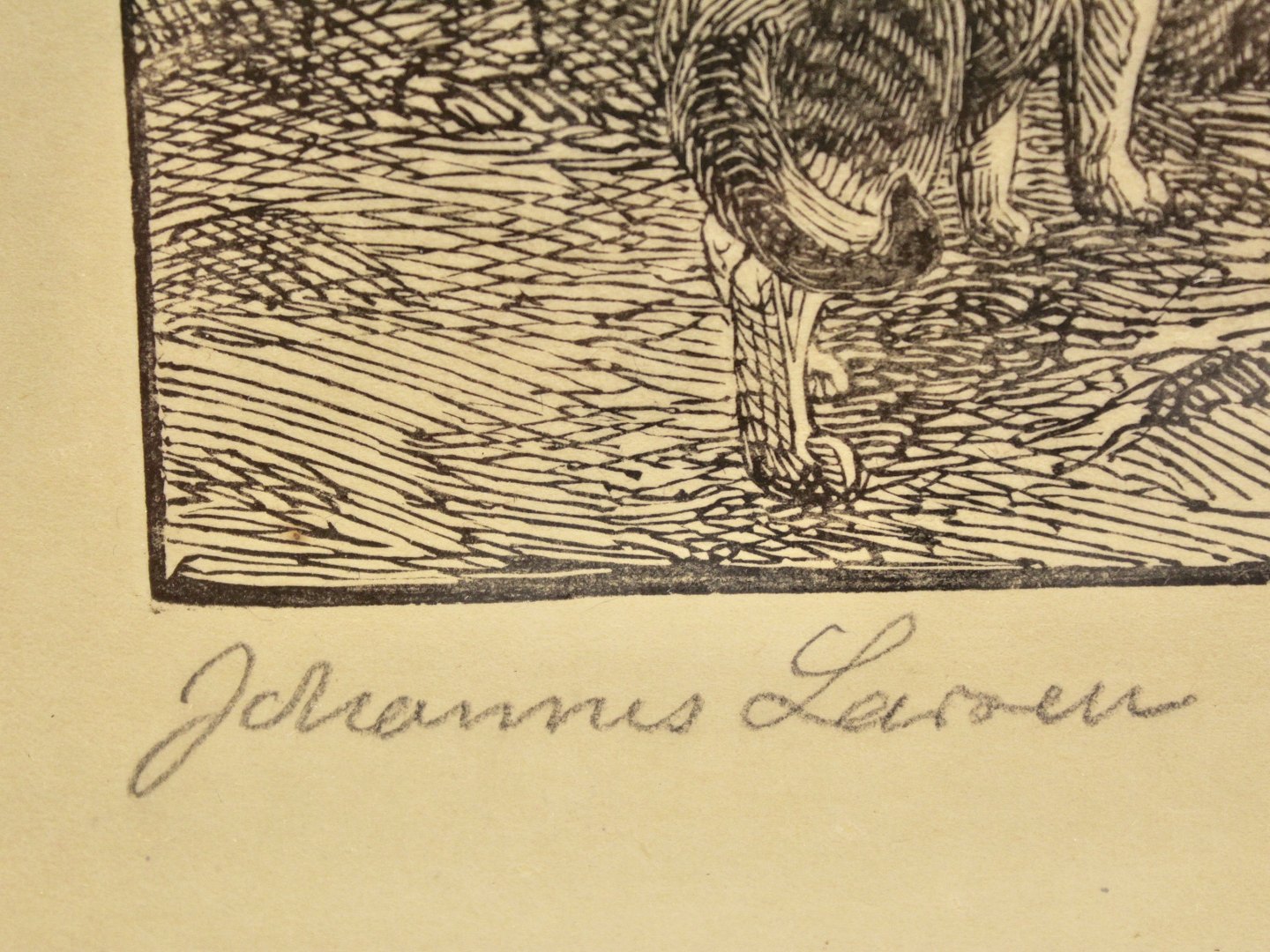Johannes Larsen signeret træsnit 25,5 x 27,5 cm. Nr. 371778