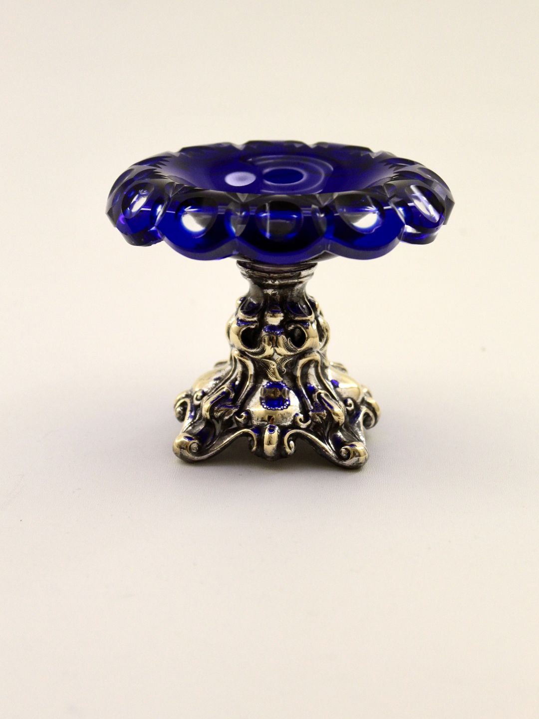 Glas saltkar dia. 9 cm. på forsølvet fod Nr. 394692