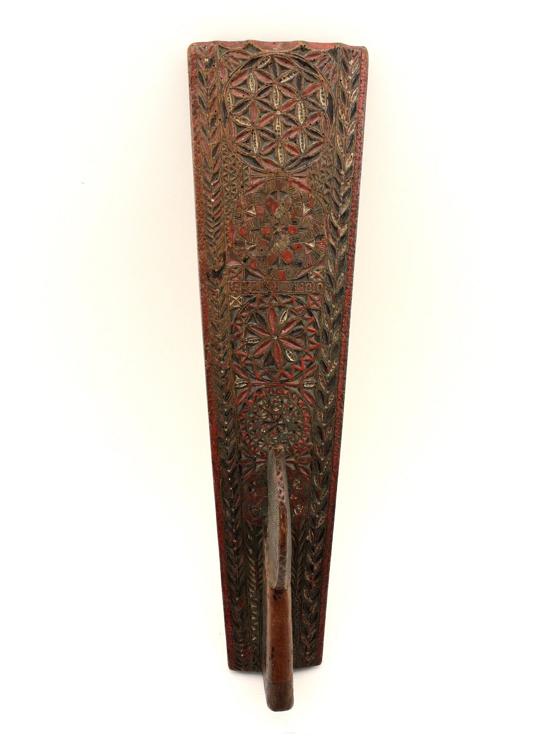 Mangle board from Ærø with carved cut rosettes initials and dated 1810 original paint. 62 cm. No. 399112