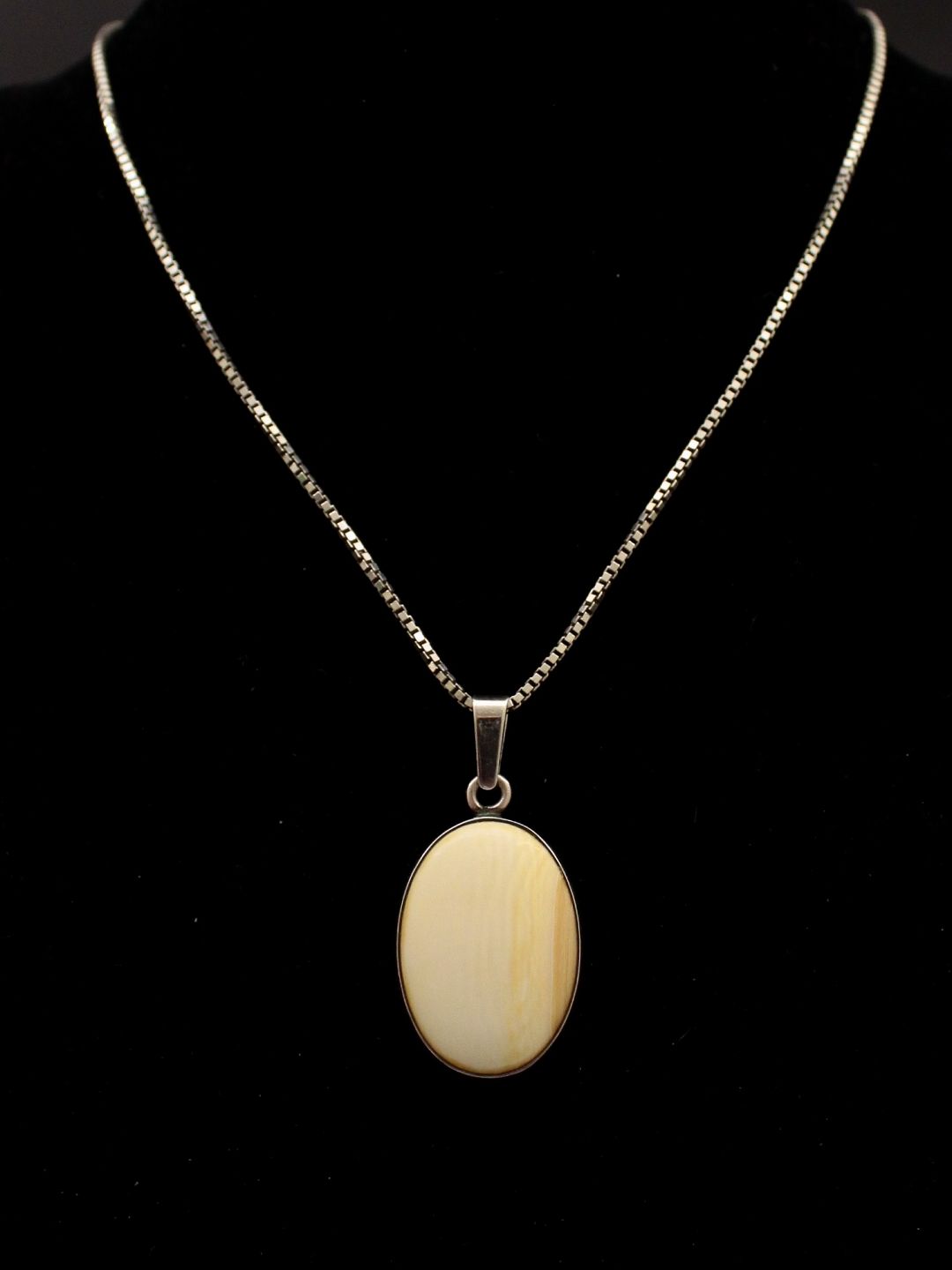 Sterling sølv halskæde 44 cm. med elfenben vedhæng 1,9 x 3 cm. stemplet N E From Sterling Nr. 403314