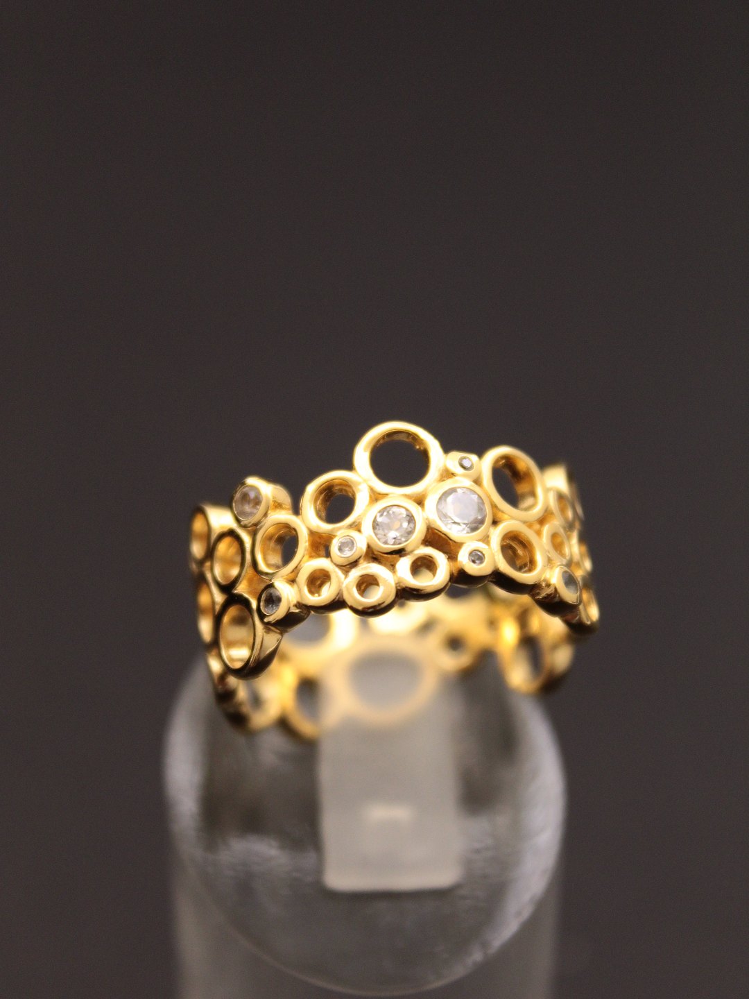 Gold-plated Sterling ring size 61 with zircons stamped CDL 925. Nr. 418396