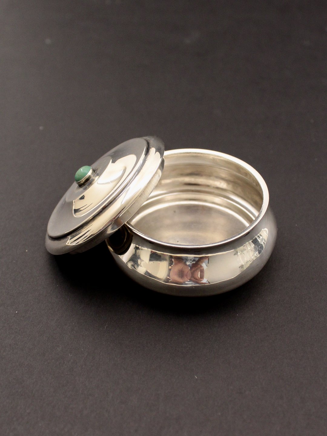 Sterling sølv dåse D. 6 cm. London sølv med turkis knop