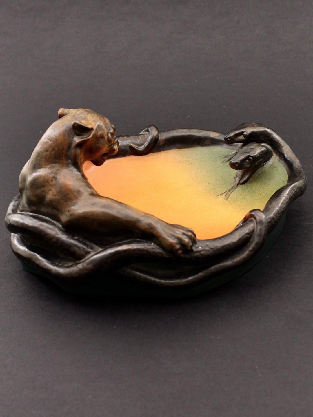 Ipsen's enke dish 24 x 27 cm. with panther and snakes. Nr. 442460