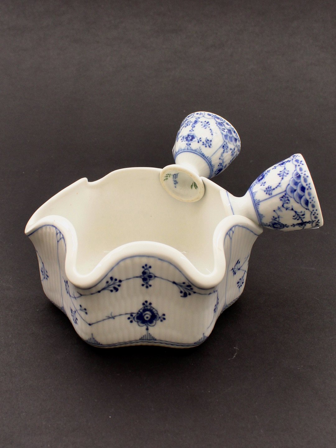 Royal Copenhagen blue fluted rare egg dish 1/471 1st variety. holds for eggs and 6 egg cups. From before 1923. Height 8.8 cm. Width 16.7 cm. Nr. 443190