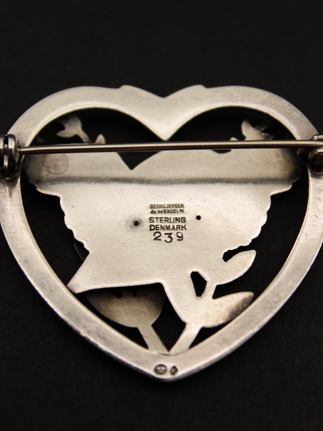 Georg Jensen Sterling silver heart brooch 239 with dove 4.3 x 4 cm. item nr. 457378