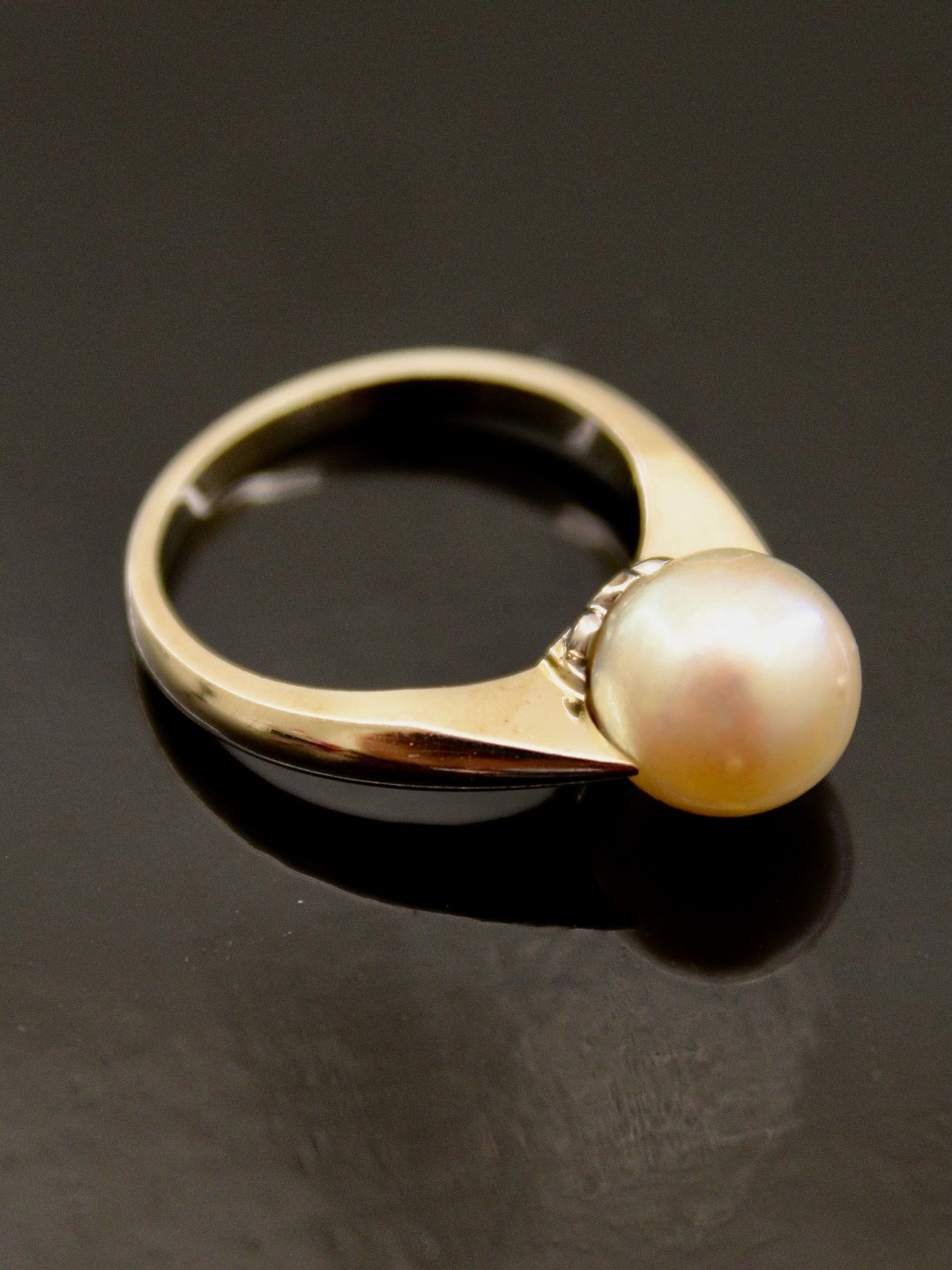 14 karat guld ring størrelse 51 med ægte perle fra juveler F. Hingelberg Aarhus emne nr. 472824