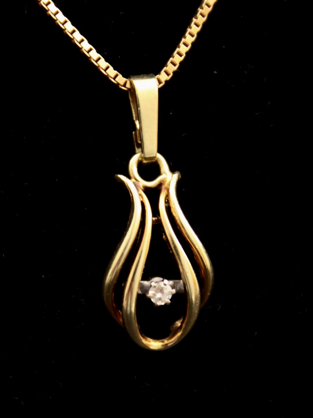 14 karat guld halskæde 50 cm. med vedhæng 1 x 1,8 cm. med brillant fra guldsmed Jens Aagaard Svendborg emne nr. 473588