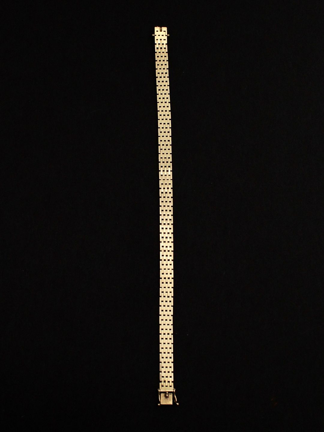 14 carat gold brick bracelet L. 18.7 cm. B.0.68 cm. from jeweler B. Hejlund Copenhagen item no. 480003