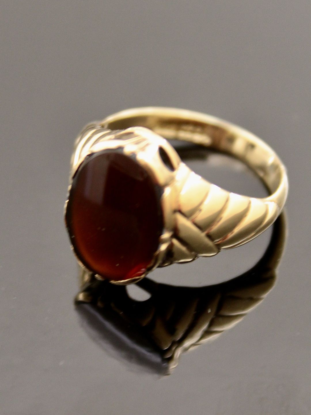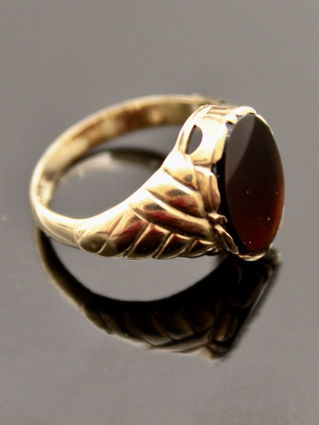14 karat guld ring størrelse 57 med agat fra guldsmed Gustav Åkerlund Århus emne nr. 486779
