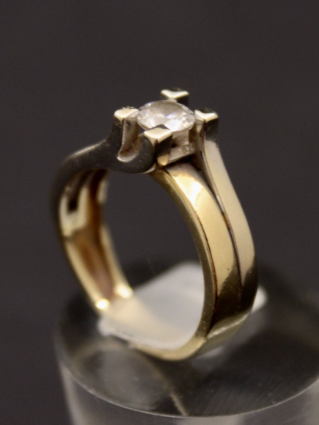 14 karat guld ring størrelse 51 med klar sten vægt 4,3 gram emne nr. 492374