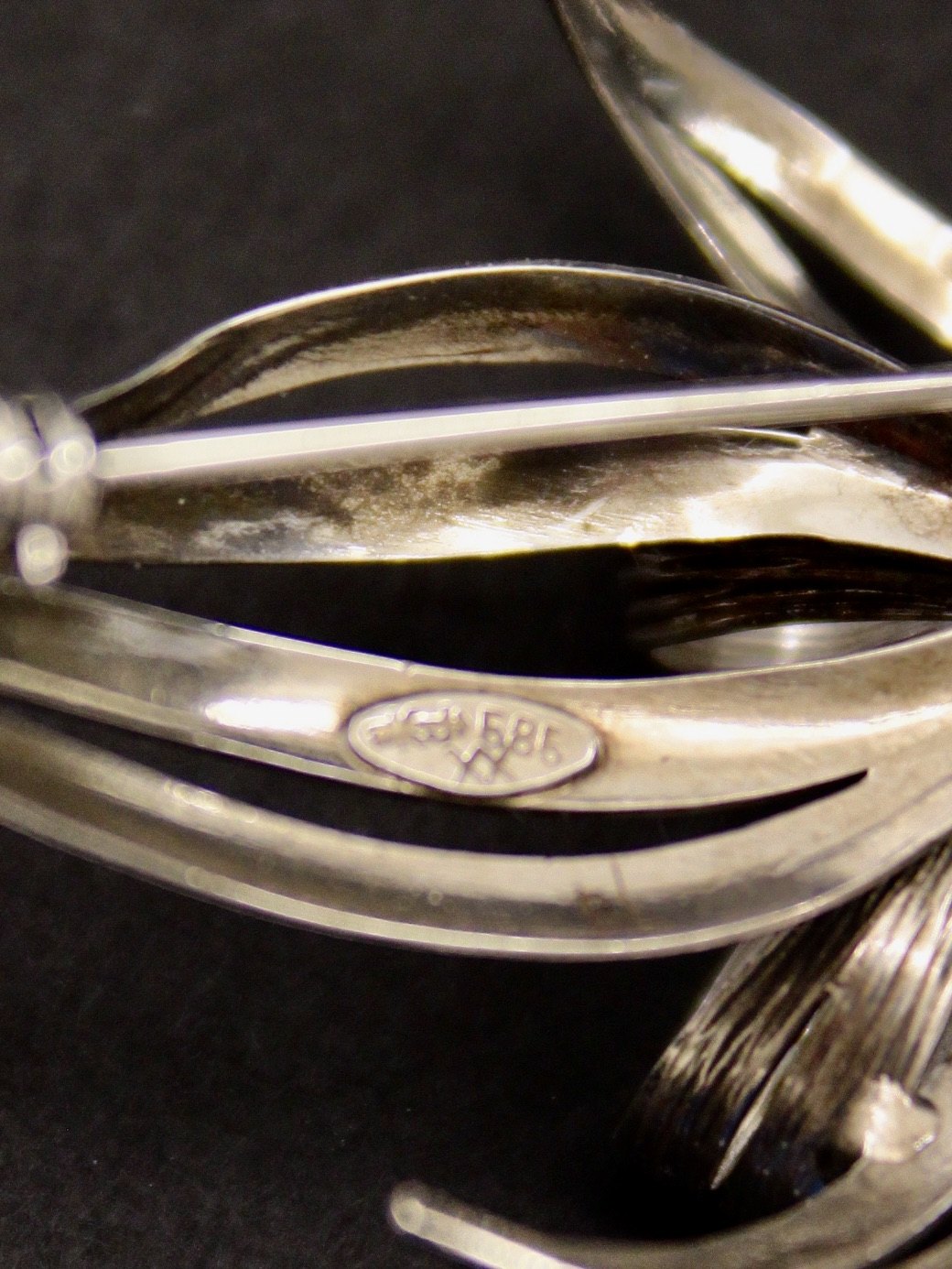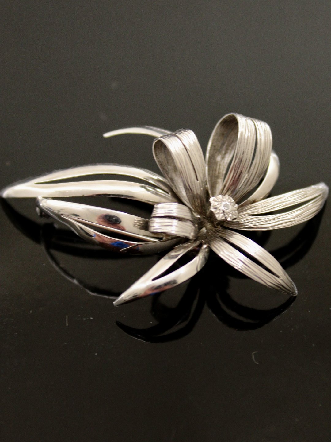 14 carat white gold brooch 5 x 3.5 cm. weighted 6.4 grams with diamond item no. 500100