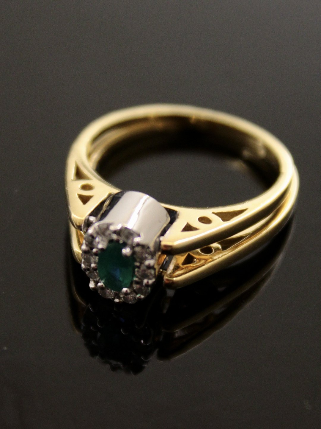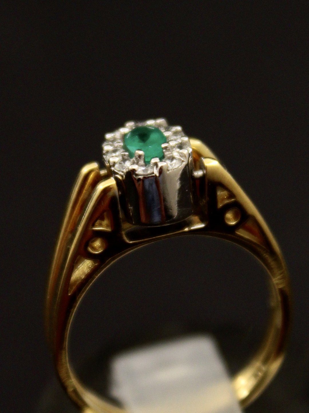 18ct Gold Turntable Ring Size 53 Emerald Surrounded by Diamonds Opposite Sapphire Item No. 501195