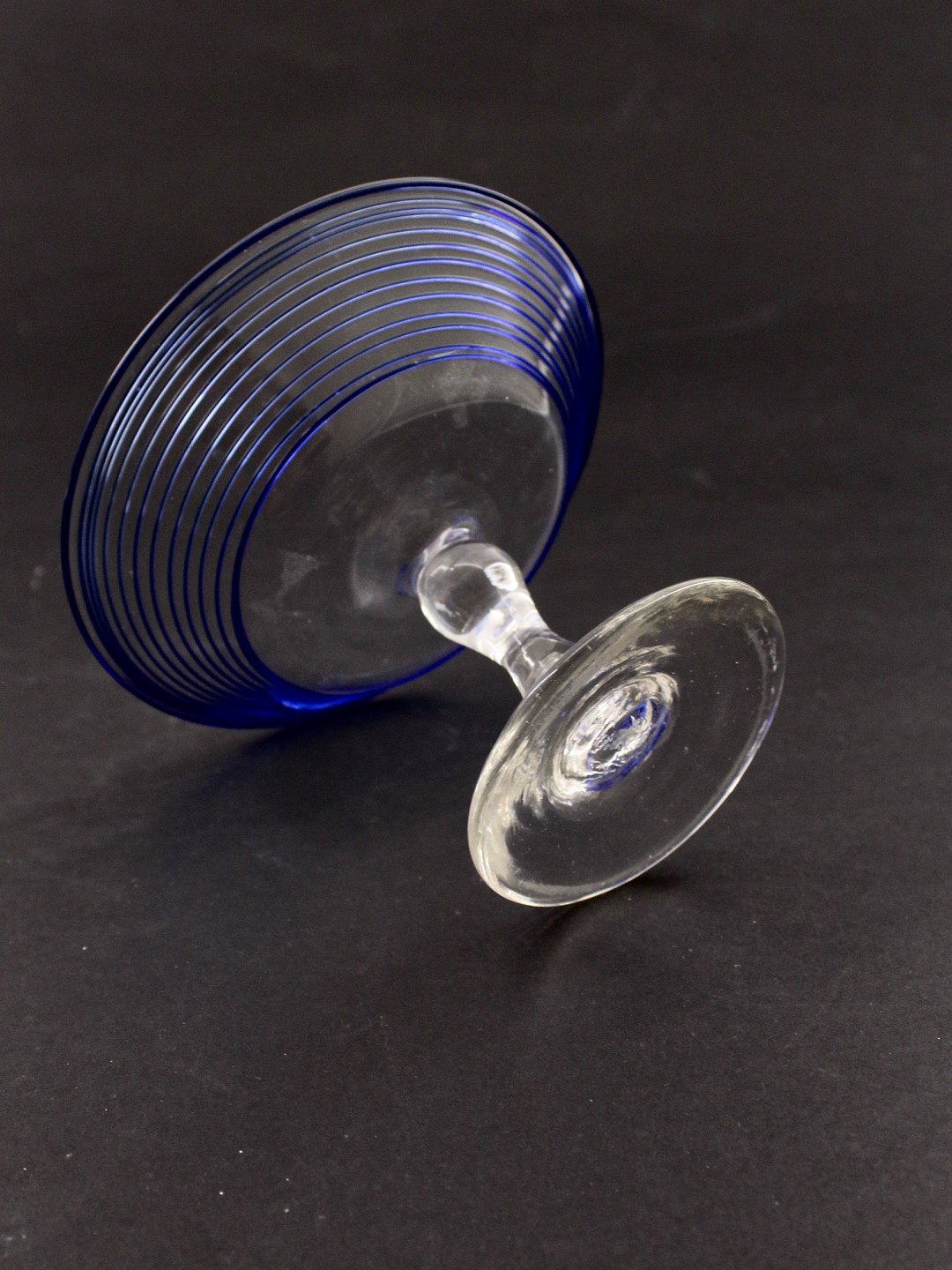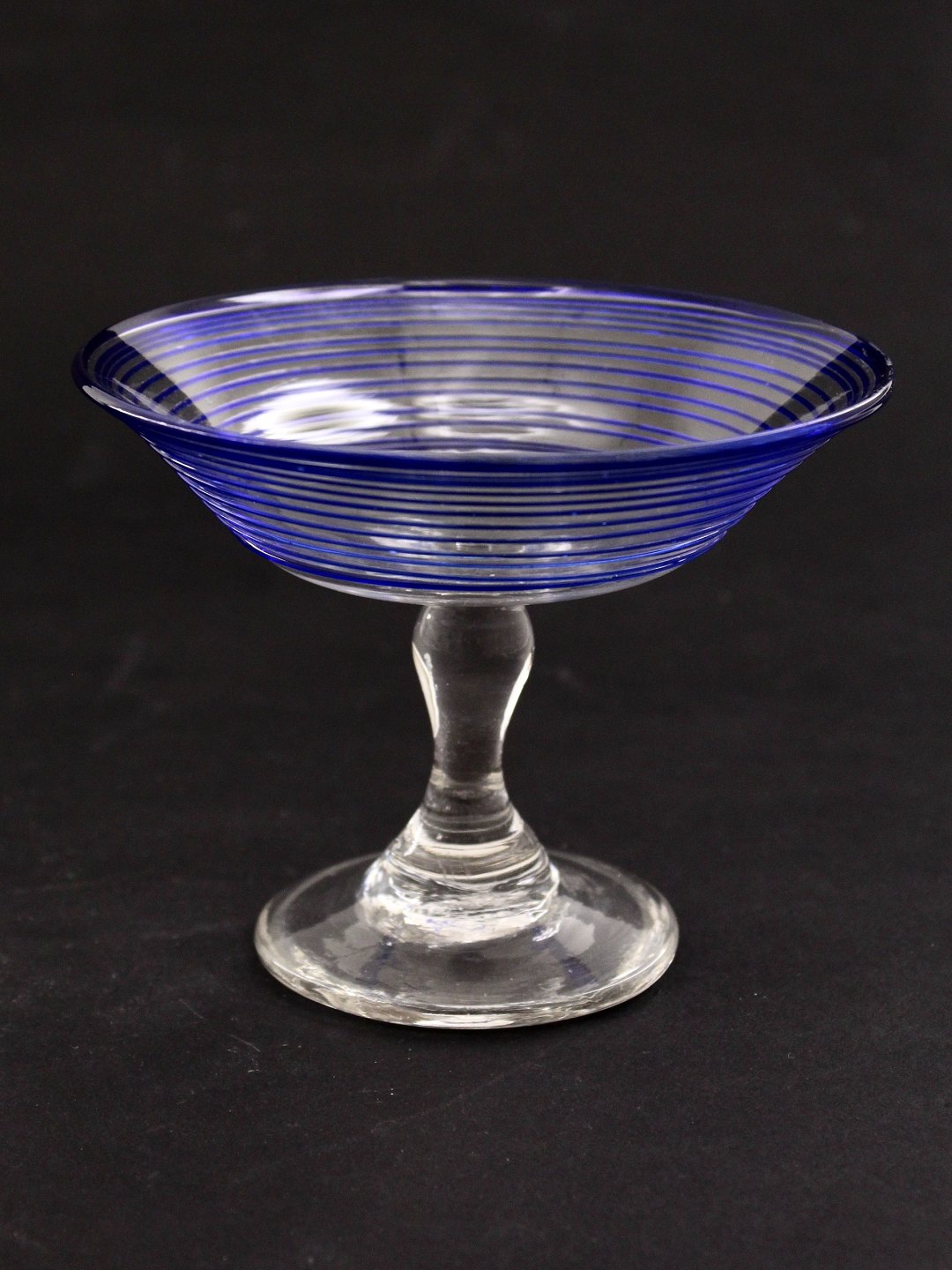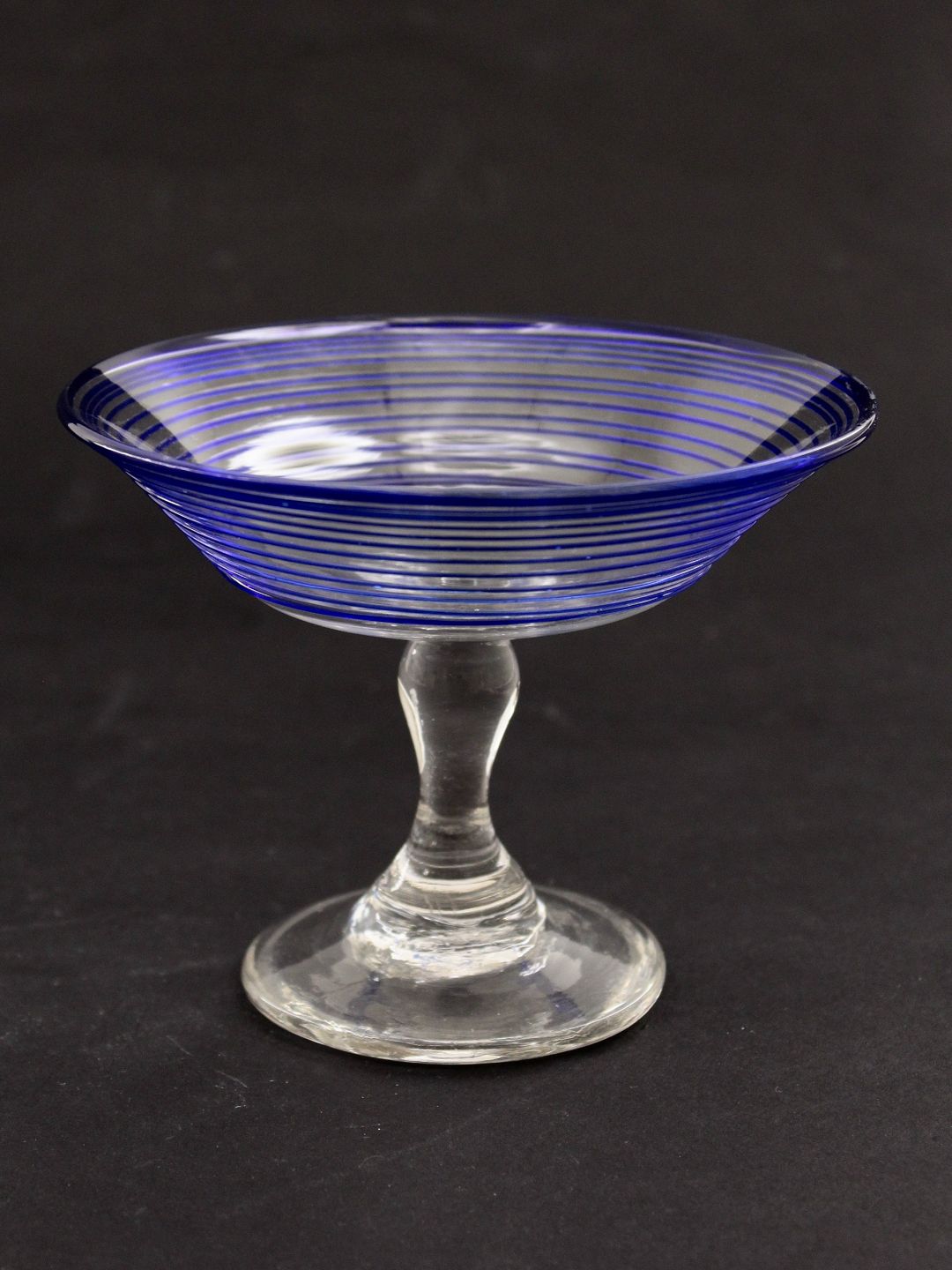 Sukker fad med spiral af blåt glas Kastrup Glasværk H. 10 cm. D. 13 cm. 19.årh. emne nr. 502864