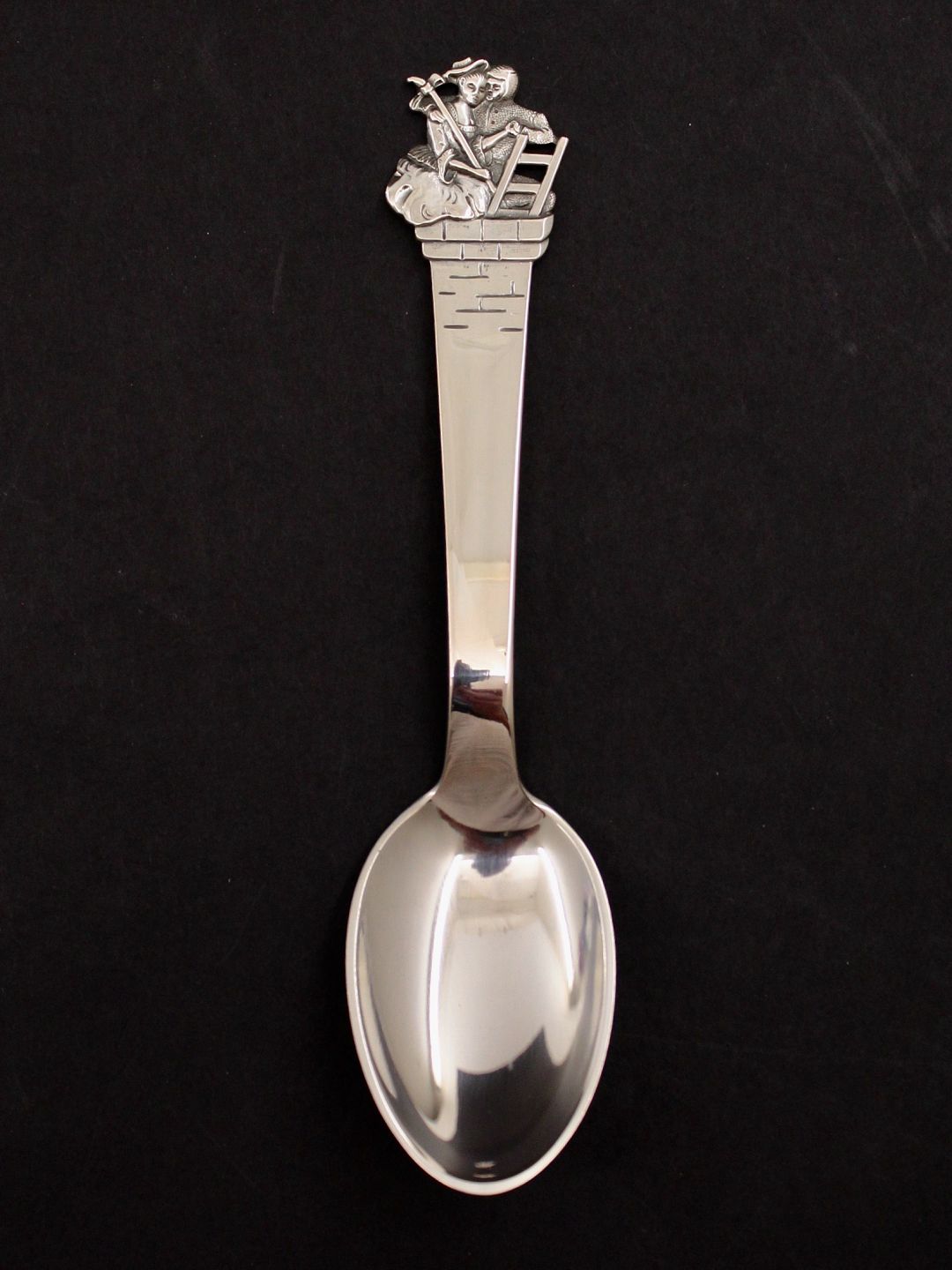 H C Andersen barne ske 14,5 cm. "Hyrdinden og Skorstensfejeren tretårnet sølv som ny ingen graveringer emne nr. 505239