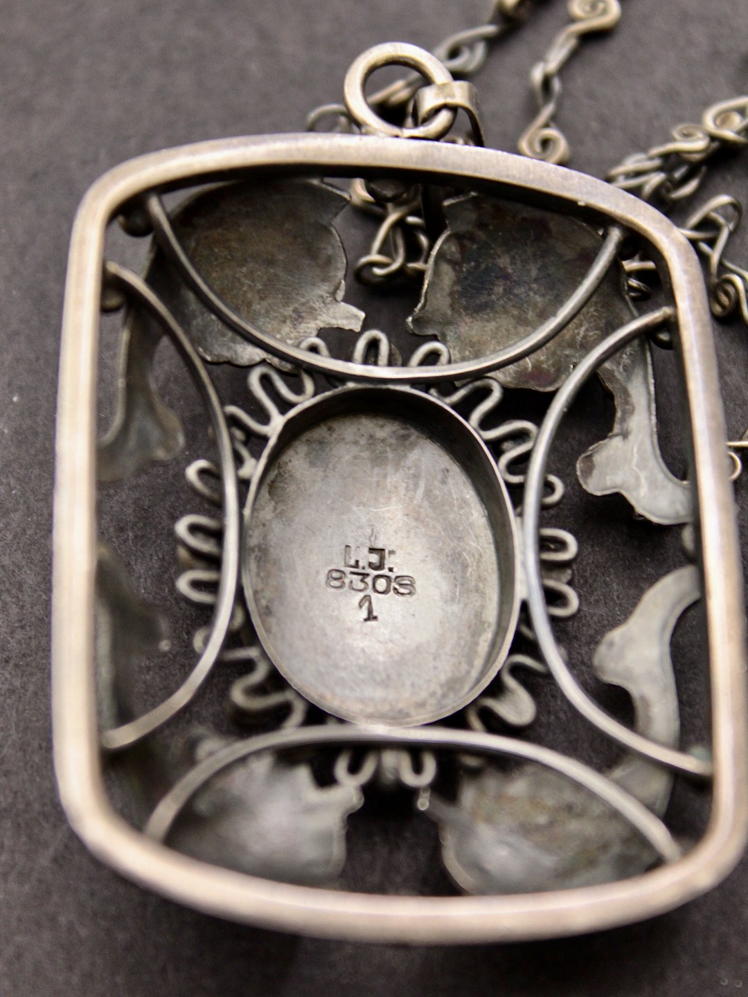 Art Deco bruneret 830 sølv vedhæng 3,5 x 4,5 cm. og kæde 50 cm. fra sølvsmed Laurits Jensen København emne nr. 509295