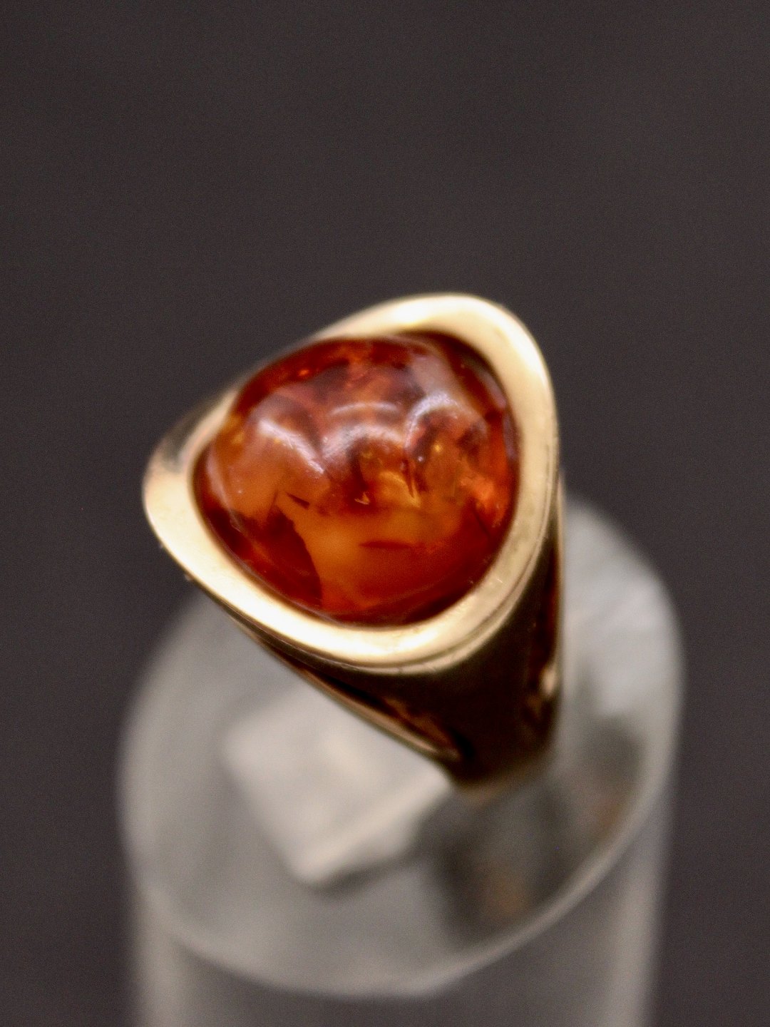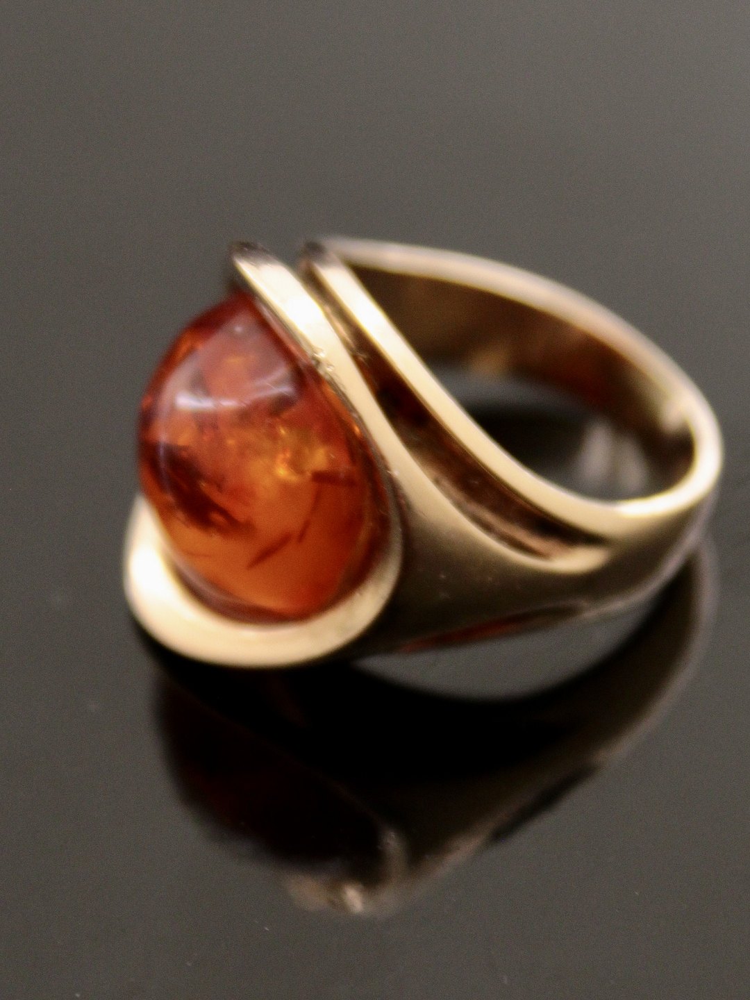 8 carat gold ring size 51-52 with amber from goldsmith E Ferm Copenhagen item no. 509758