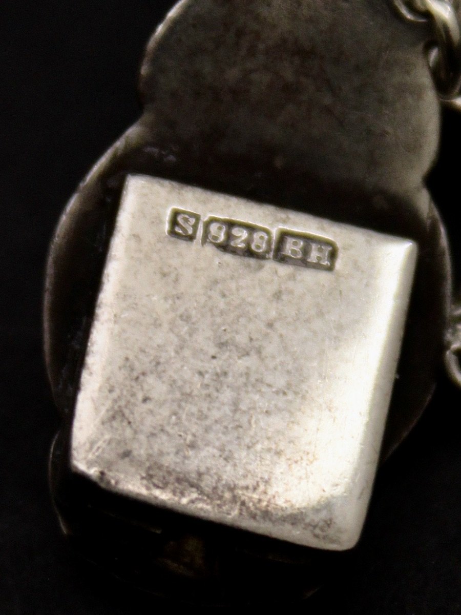 Sølv armlænke 18 cm. med grønne chyrocoprasser og broche 2,4 x 1,4 cm. fra B Hertz København emne nr. 542181