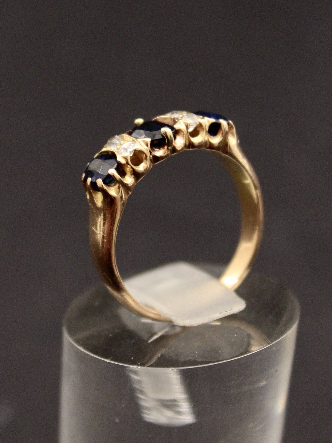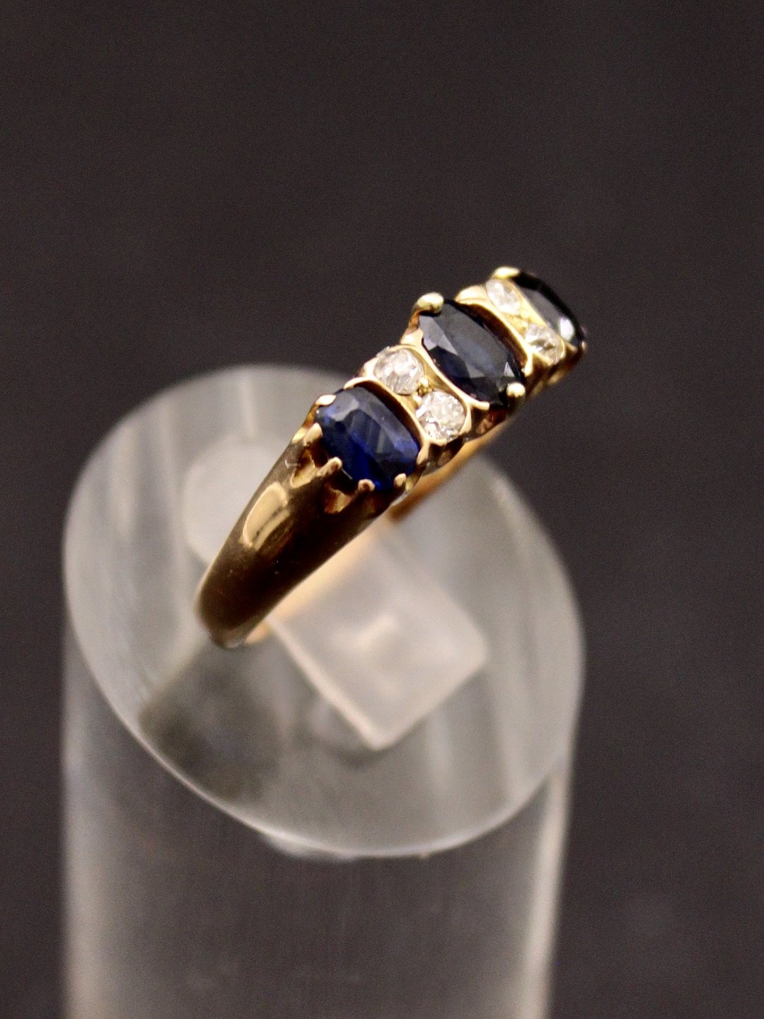 14 karat guld ring størrelse 54 med diamanter og safirer emne nr. 543043