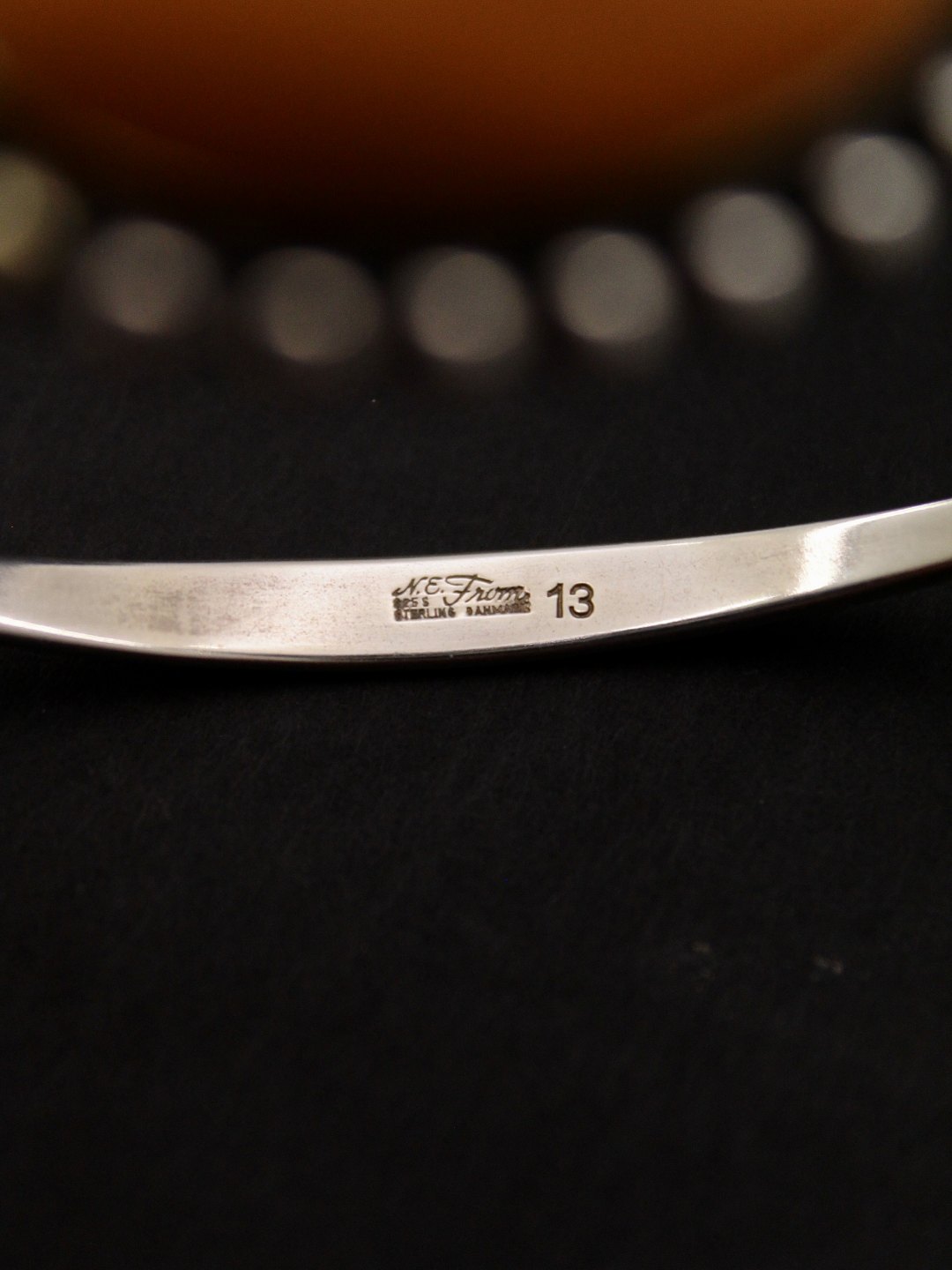 N.E.From sterling sølv vintage armring 4,6 x 5,6 cm. med rav 1.6 x 2,6 cm.