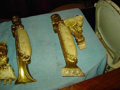 Skilt ad og limet sammen igen. Overfladebehandlet med bladguld. Patina i politur (shellak)