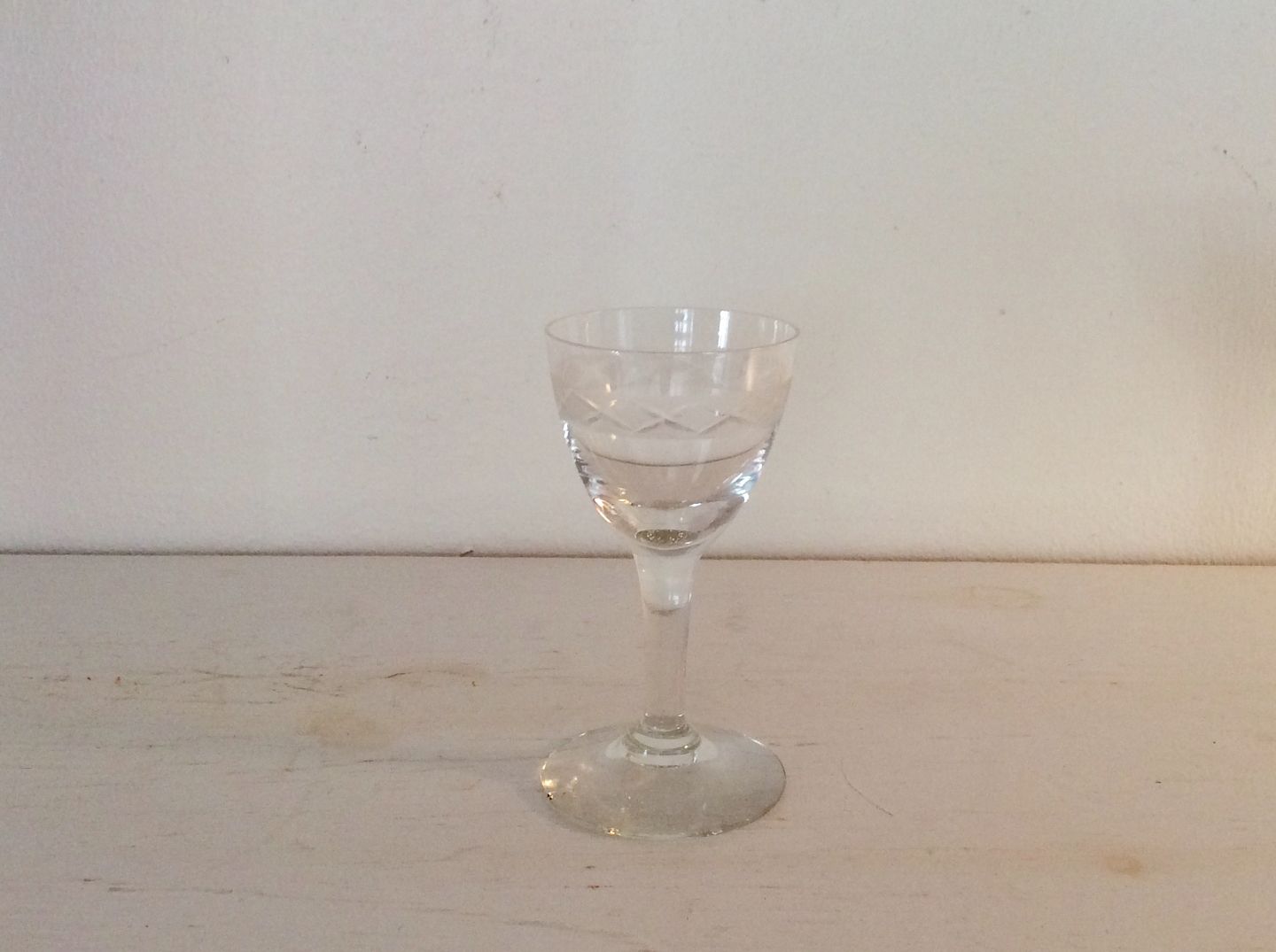 Holmegaard, Ejby, Snaps glas with cross-cuts, 8.3 cm high, Design Jacob E. Bang * Perfect condition *