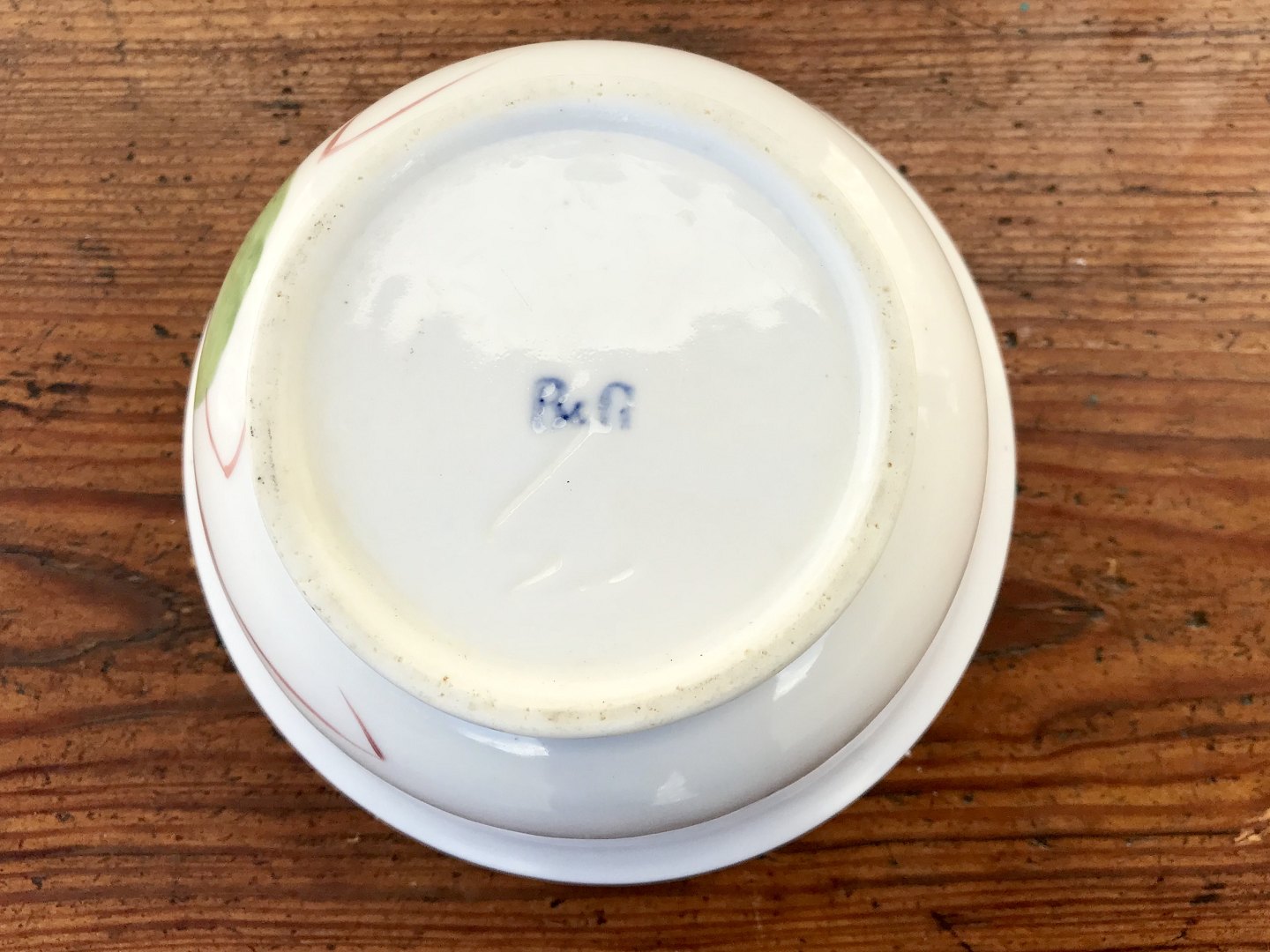 Bing & Grondahl, Old bowl with water plant decoration # B & G, 7.5cm high, 15cm in diameter * traces of wear on the inside *