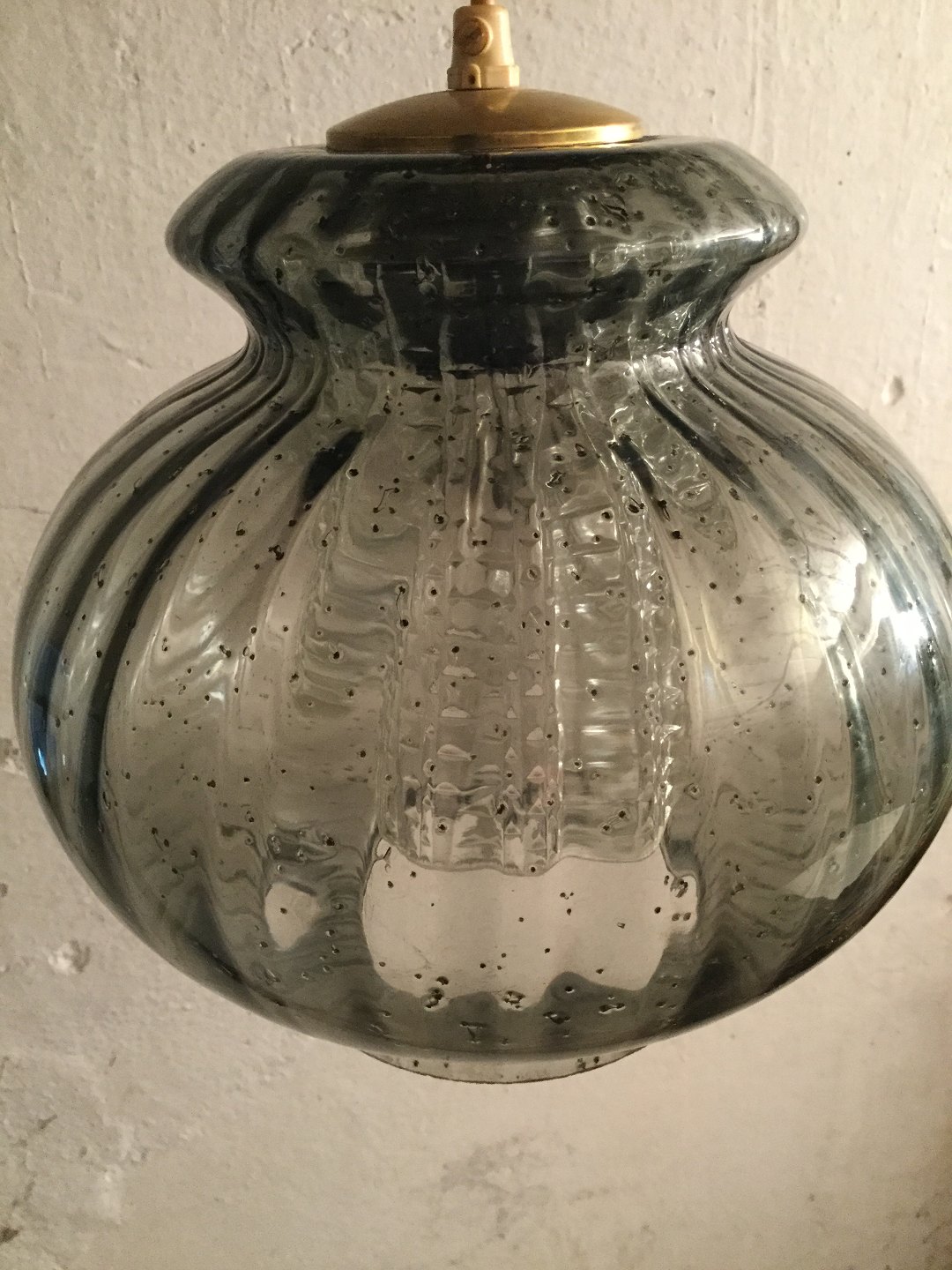 Gray glass pendant in strong rustic glass. From approx. 1970. Height approx. 23 cm.