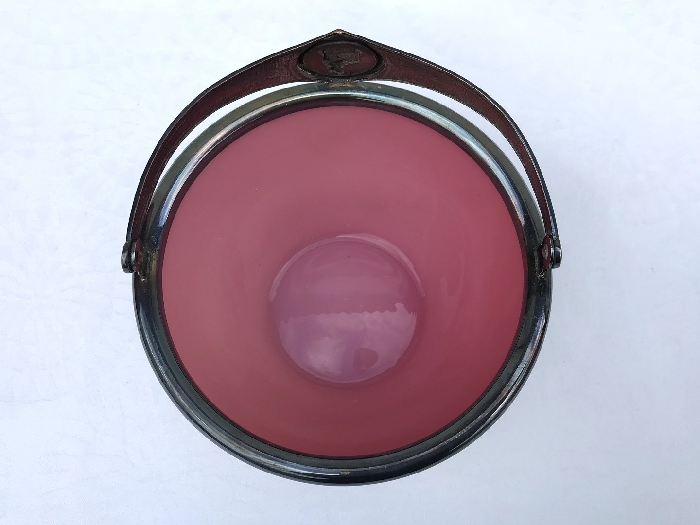Candy bowl, Pink & white Opal glass, 7cm high, 13.5cm in diameter, Hank in silver plated brass * Nice condition *