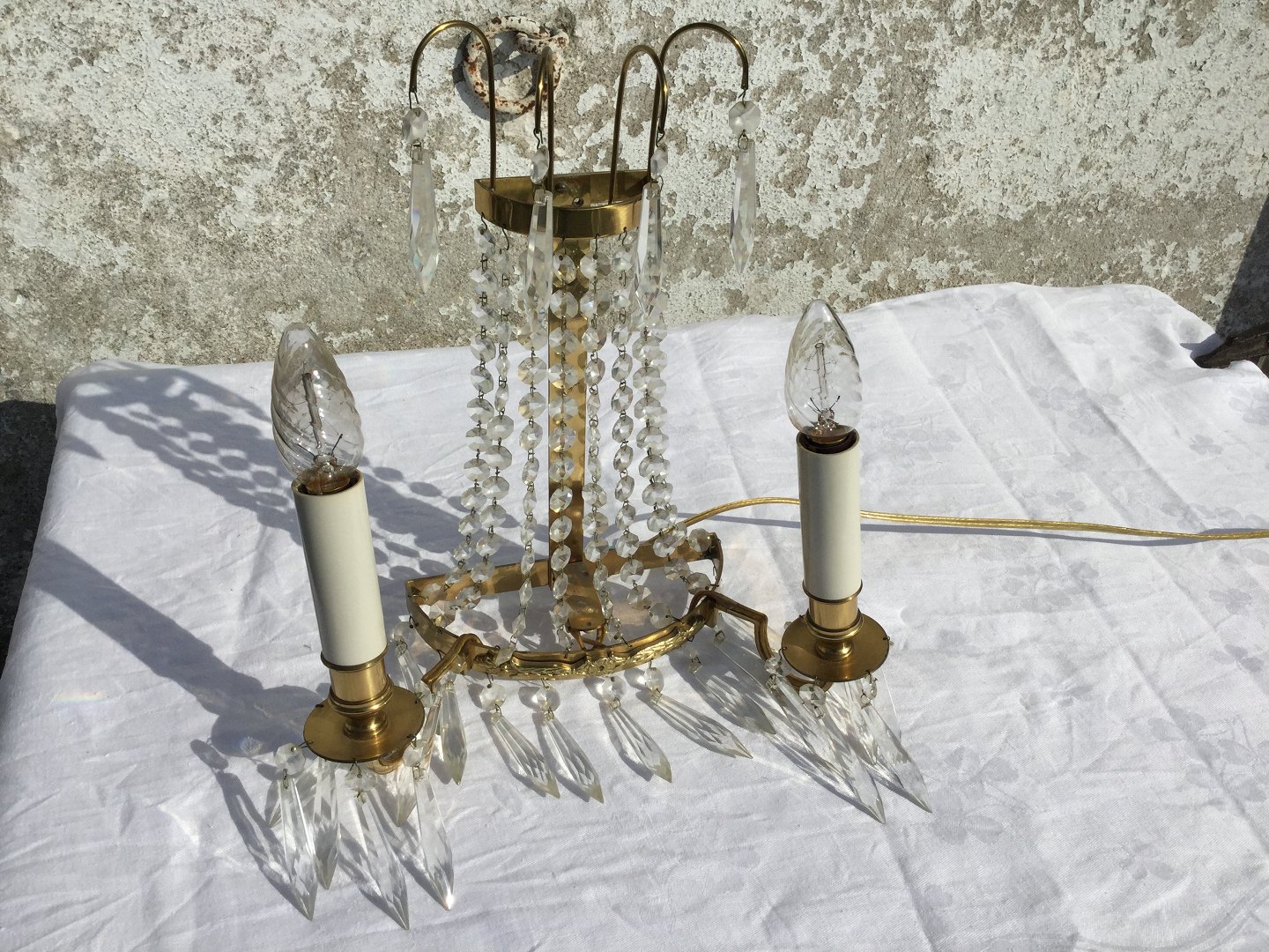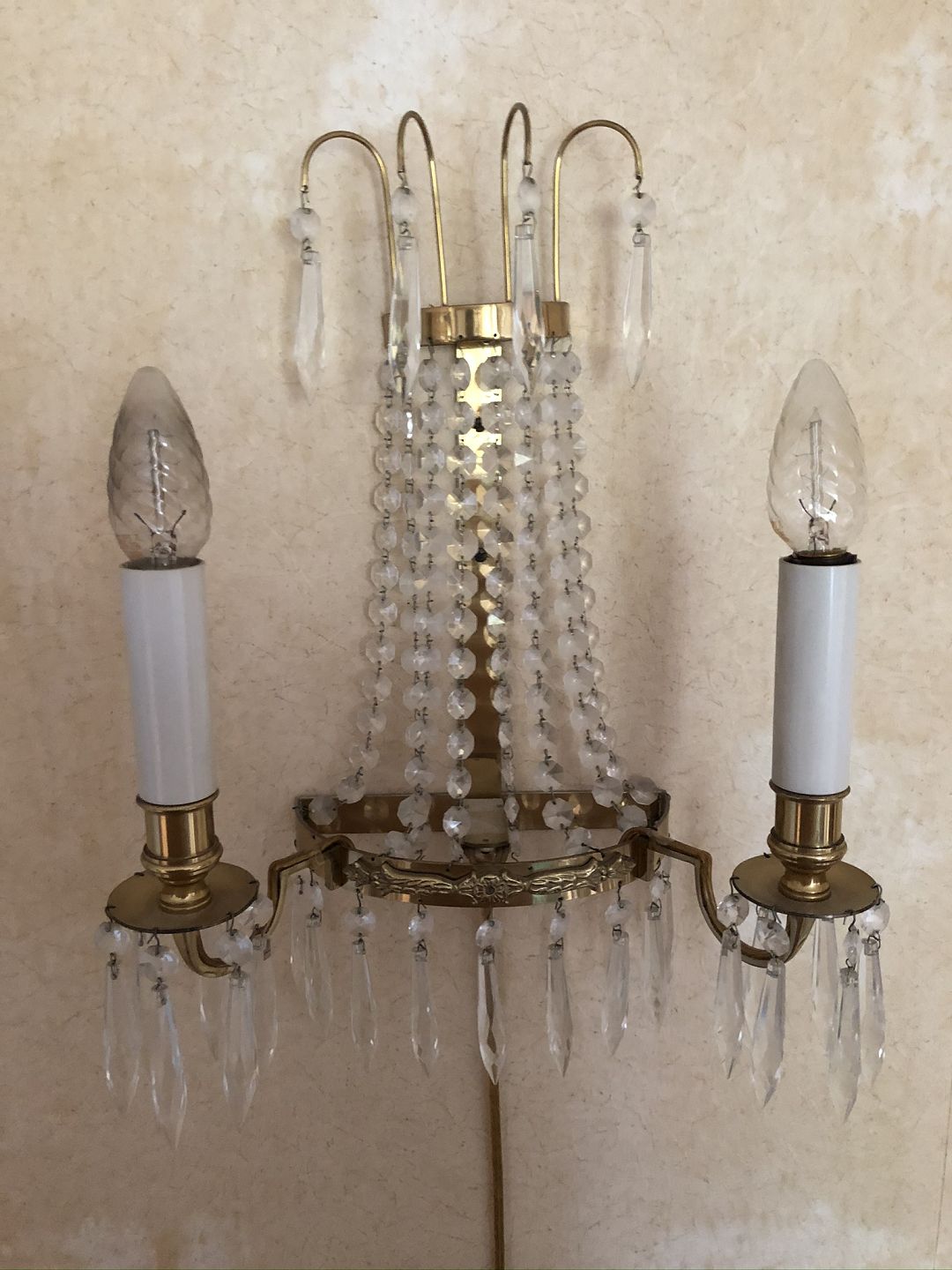 Wall lamp in brass with prisms. Fine used condition. Height approx. 35 cm.