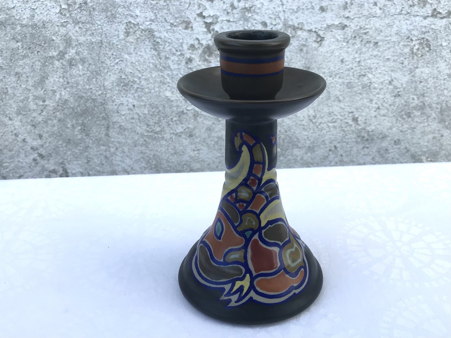 Gouda Candlestick. 9.5cm in diameter, 16cm high, Brand: 1847 Andely Gouda Holland * Nice condition *