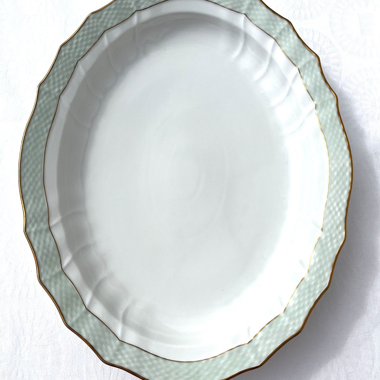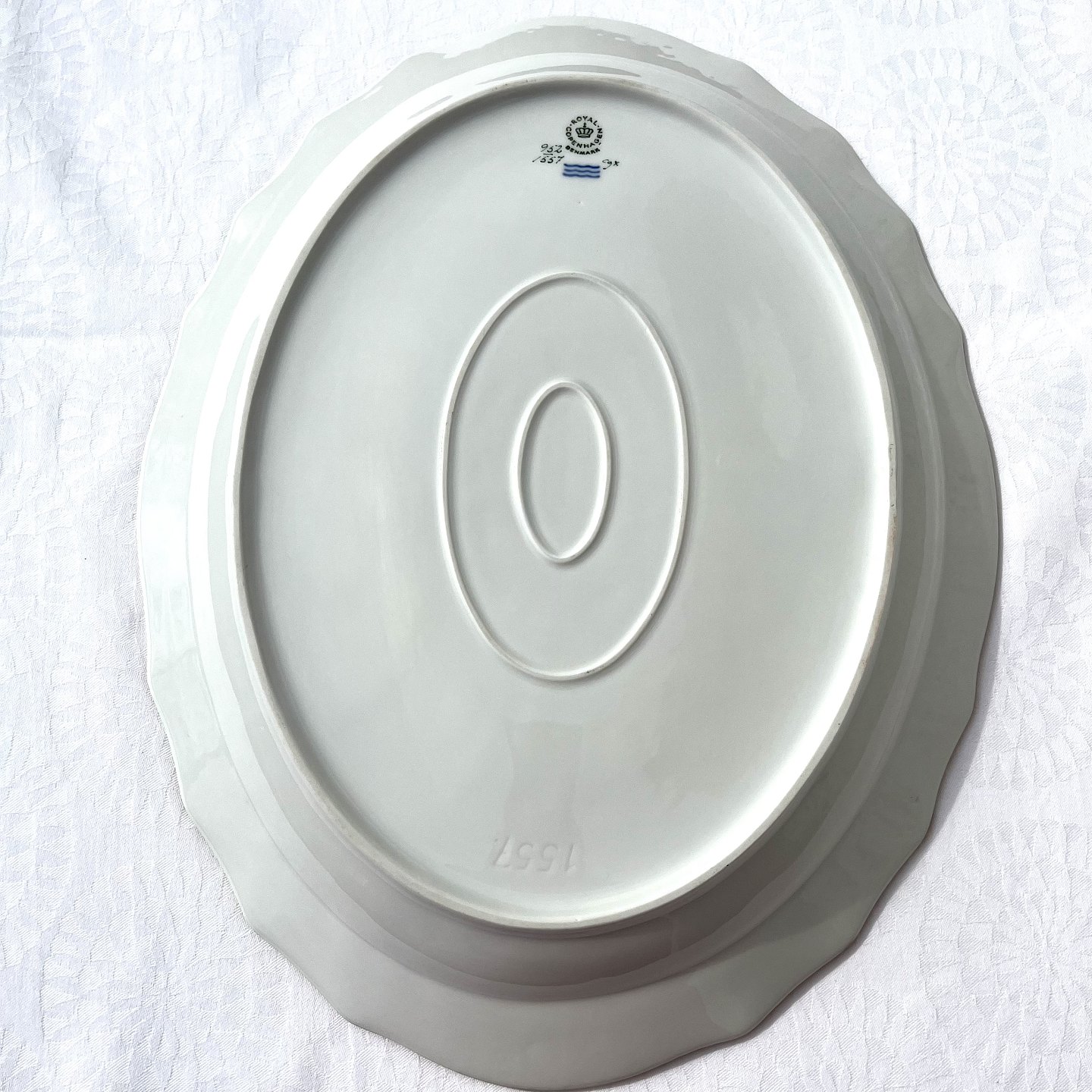 Royal Copenhagen, Green curved, Serving dish # 952/1557, 40.5cm long, 31cm wide, 1st grade * Perfect condition *